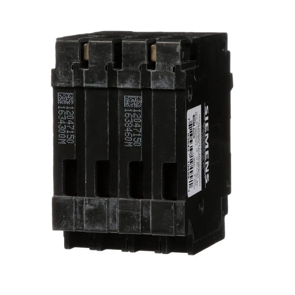 Siemens Triplex Type QT breakers feature a 1/2 in. frame per pole and are designed for use in Siemens panels that accommodate CTL-type QT breakers. These breakers provide overload and short-circuit protection to safeguard your home's wiring from damage caused by excessive electrical currents. The Triplex Circuit Breaker includes an inner 2-pole and two outer 1-pole breakers. They are plug-in style, with load terminals included. Rated for 120/240-Volt AC and designed for a maximum ambient temperature of 40°C, these breakers offer a standard interrupting rating of 10k AIC.