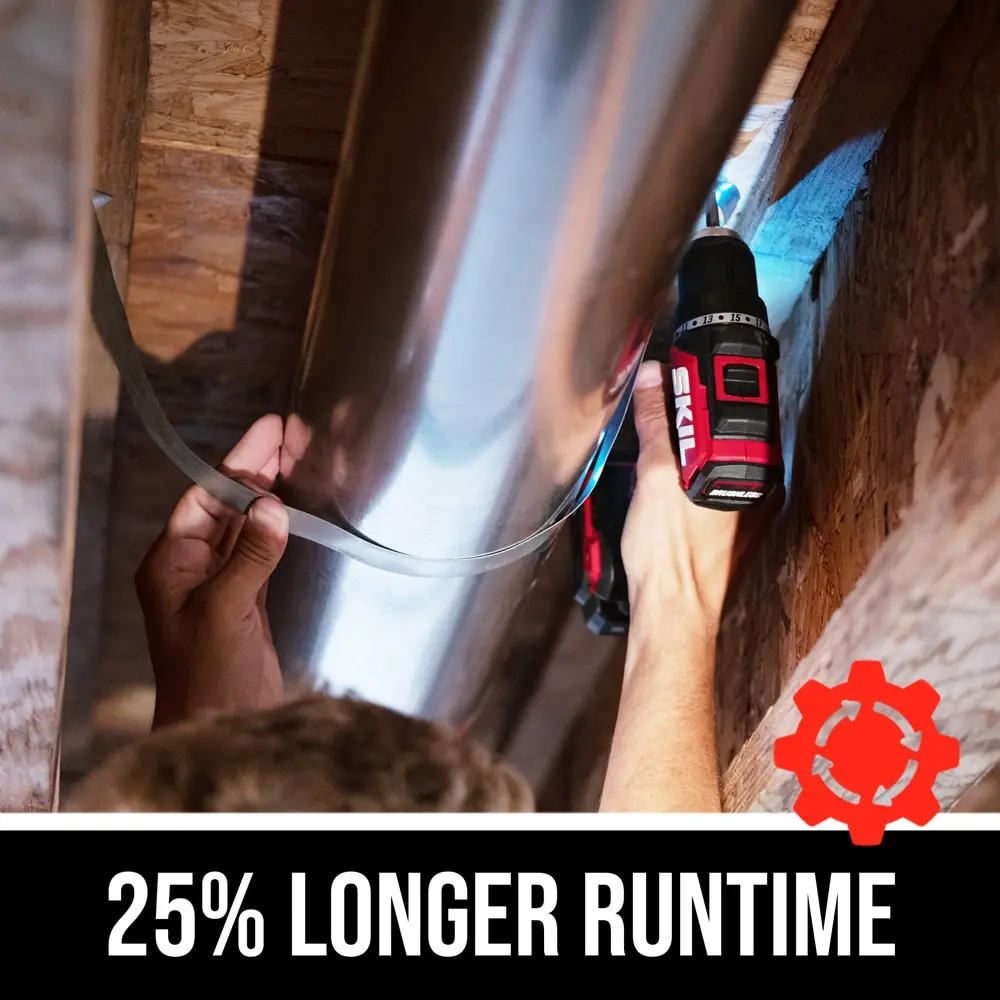 The SKIL PWR CORE 12 Brushless 12V 1/2-Inch Cordless Drill Driver combines substantial power with a compact design. At an inch shorter than its predecessor, this cordless electric drill is perfect for overhead work or tight spaces. Its digital brushless motor delivers high performance with up to 350 inch-pounds of torque, ensuring durability for long-lasting use. An onboard LED light provides illumination with pre-light and after-glow features for enhanced visibility during challenging projects. Youll have precise control with the variable speed trigger, and the 1/2-inch single-sleeve keyless chuck allows for quick and easy bit changes. This cordless drill set includes the drill driver, a 2.0Ah lithium-ion battery with mobile charging capability, a charger, a belt clip, a screwdriving bit, and a battery jacket.