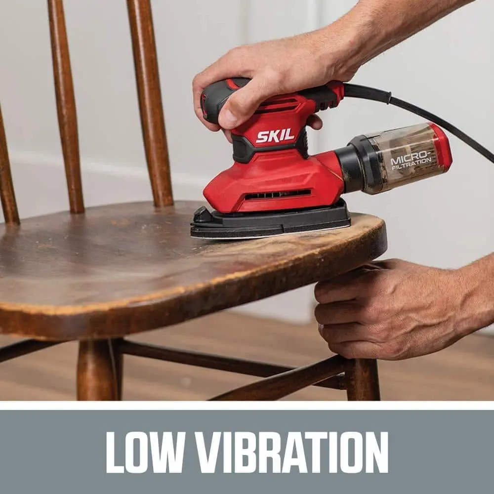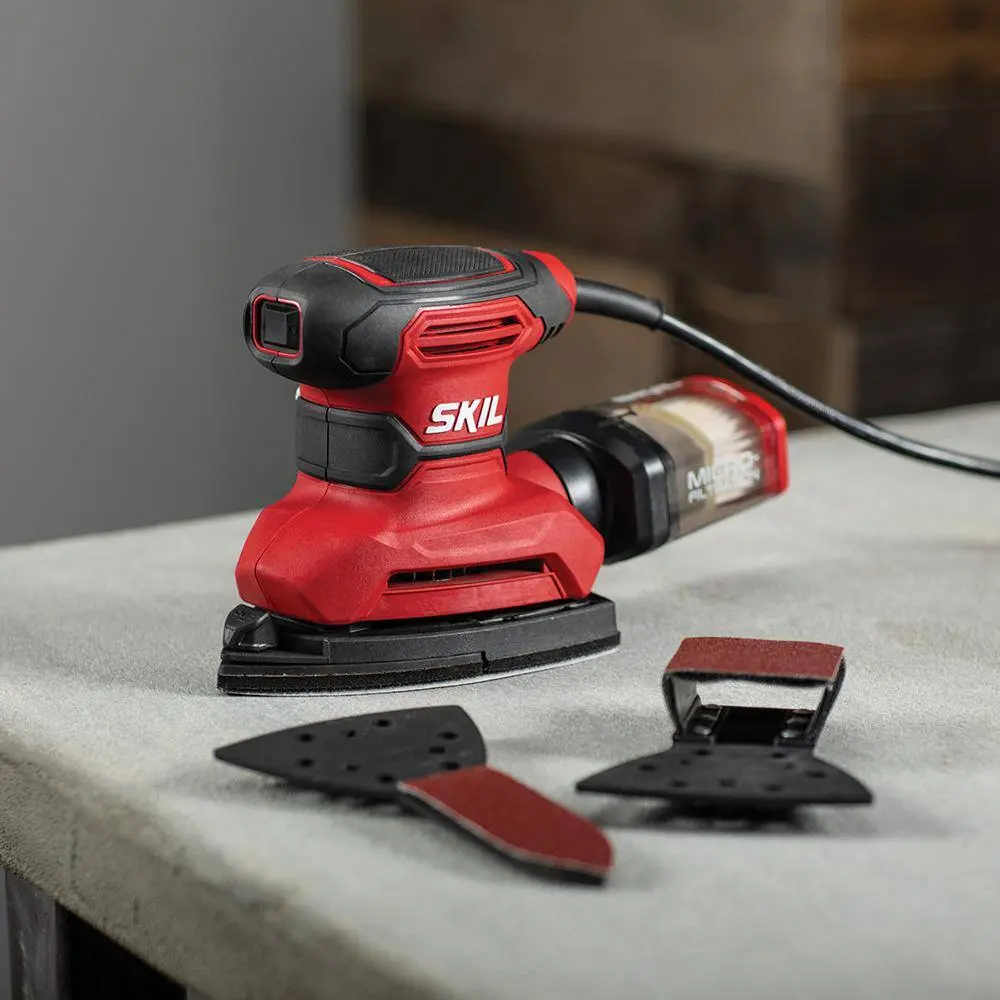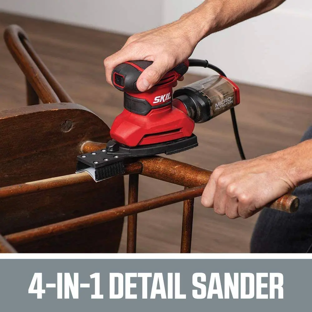 This compact sander combines power and precision to achieve fine finishes on various surface contours while effectively collecting dust to minimize mess. It includes three detail attachments: a thin triangular pad for tight spaces, a finger extension for narrow areas, and a flexible pad for sanding curved surfaces, addressing all your fine sanding needs. The robust 1.2-amp motor delivers 13,500 OPM, along with micro-filtration and low vibration for optimal performance.