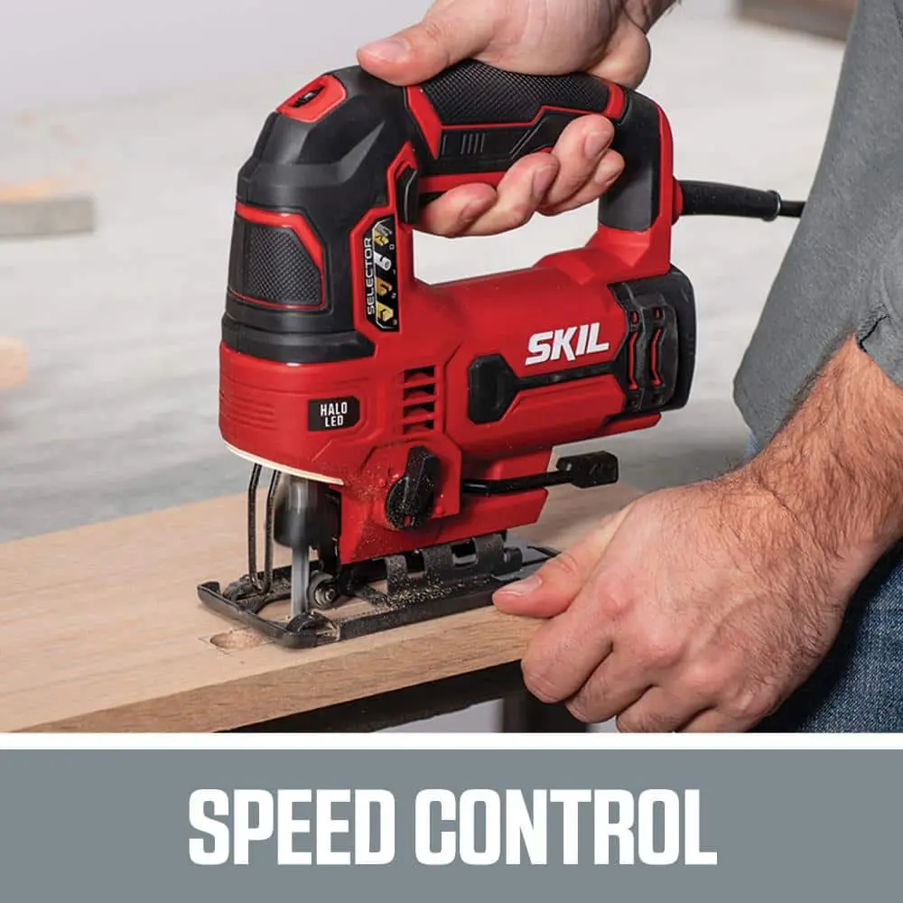 Accurate and Feature-Rich The SKIL 6-amp jigsaw offers precision across a variety of applications, thanks to its 4-stage orbital function, speed control, and dust-blowing feature. With tool-free blade changes, the ability to make angled cuts, and a Halo Light, this jigsaw stands out from the competition.