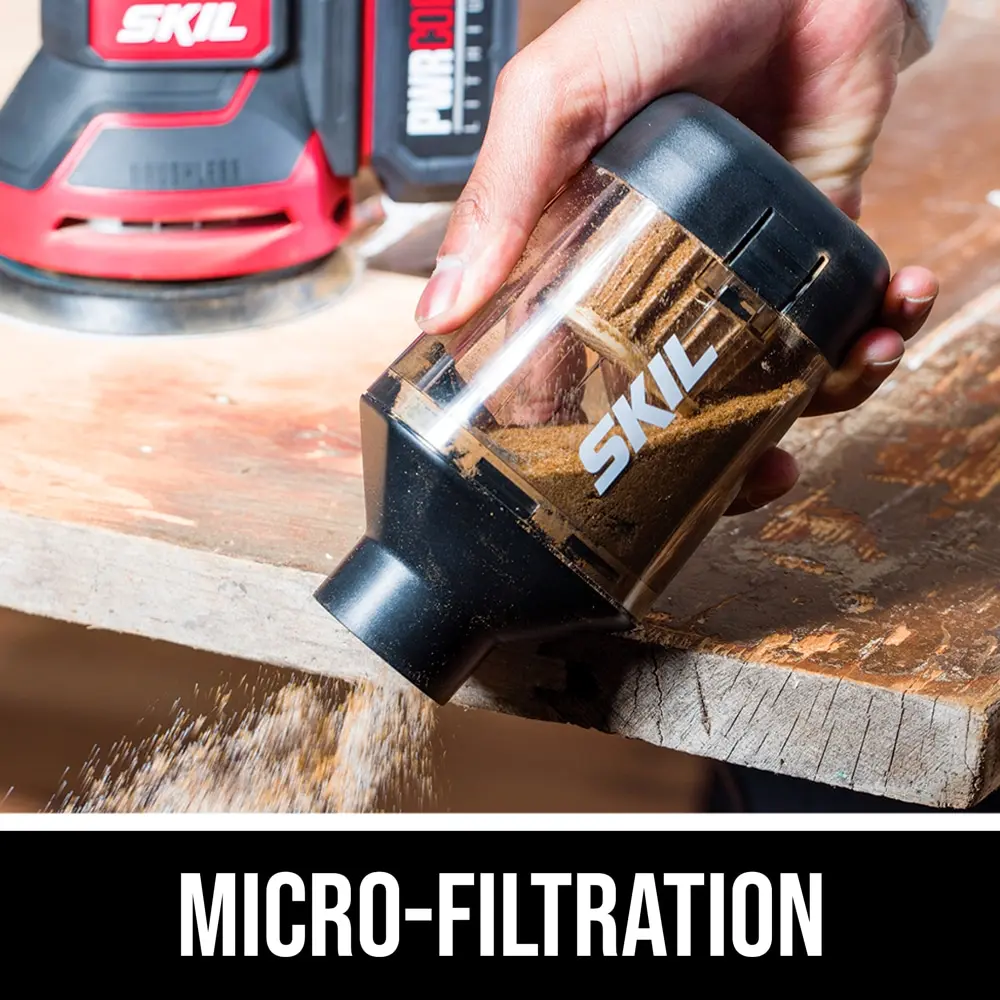 From refinishing wood furniture to renovating cabinetry, the high-performance SKIL PWR CORE 20 Random Orbital Sander is designed for ultra-smooth sanding on various projects. This versatile cordless electric sander vibrates and spins simultaneously, preventing noticeable swirls and scratches. The hook-and-loop pad allows for quick and easy sandpaper changes, maximizing efficiency on the job. This orbital sander kit includes a 2.0Ah lithium battery and an automatic charger, ensuring longer run time and battery life.
