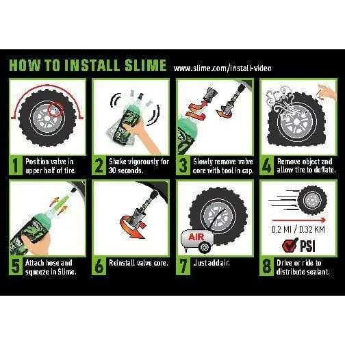 Whether your tire has a tube or is tubeless, Slime’s 2-in-1 Tire & Tube Premium Sealant has you covered. This versatile sealant prevents and repairs flats in all off-highway tires and tubes, instantly sealing punctures up to 1/4" in tires and 1/8" in tubes. Slime’s patented formula seeks out puncture points, using escaping air pressure to create a durable, flexible plug that stops leaks immediately. Enjoy up to two years of continuous flat protection for your non-highway vehicles, including bicycles, ATVs, golf carts, lawn mowers, and more.