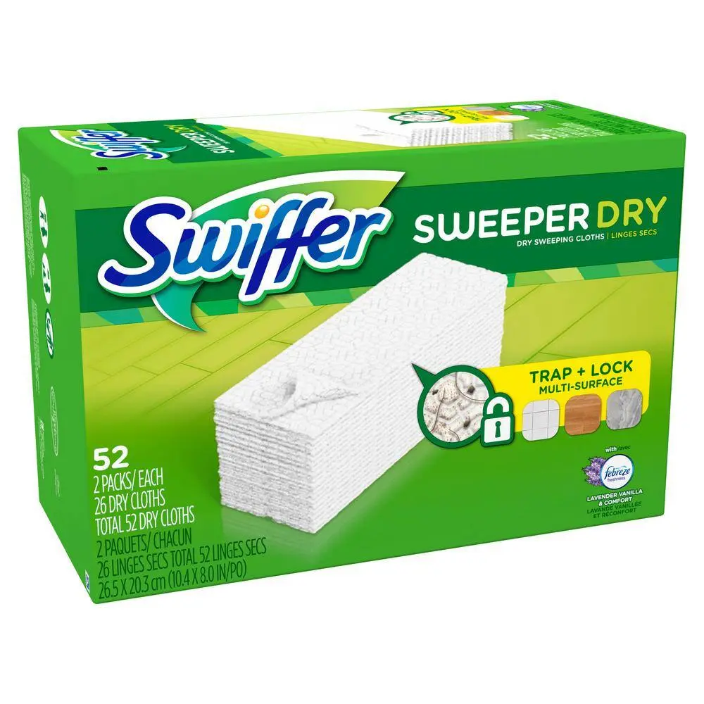 Swiffer Sweeper Multi-Surface Dry Sweeping Cloth Refills feature deep textured ridges that effectively trap and lock dirt, dust, and hair, keeping your floors spotless and free of debris. Enjoy the long-lasting lavender scent, which lingers for up to one hour after use. These cloths are perfect for use with your Swiffer Sweeper Dust Mop, offering a convenient solution that combines the power of a broom and mop for a fast, easy clean.