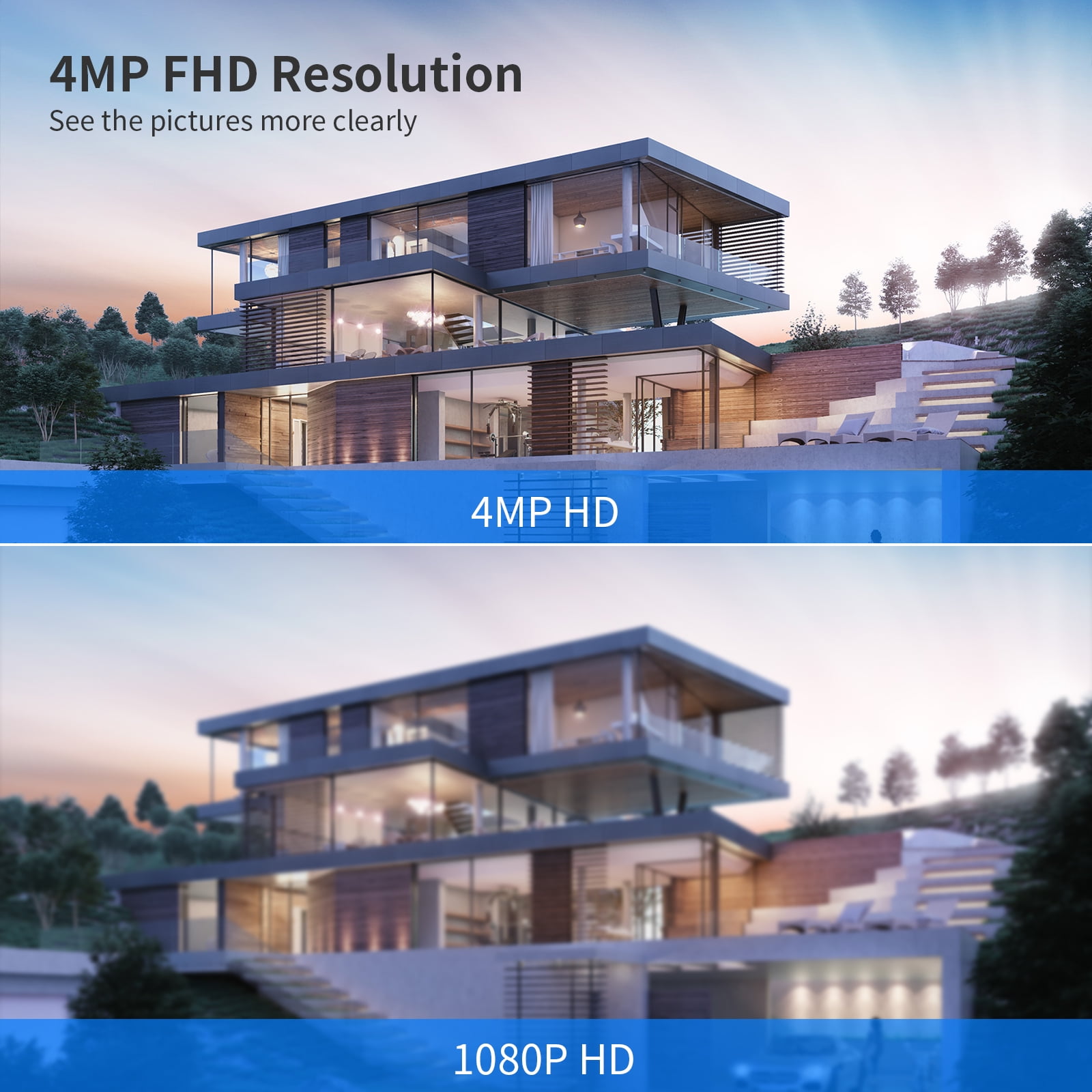With Full Color Night Vision, this camera is equipped with 4MP FHD color sensors, 8 infrared LEDs, and 8 white lights.It offers two night vision modes: infrared and full-color.