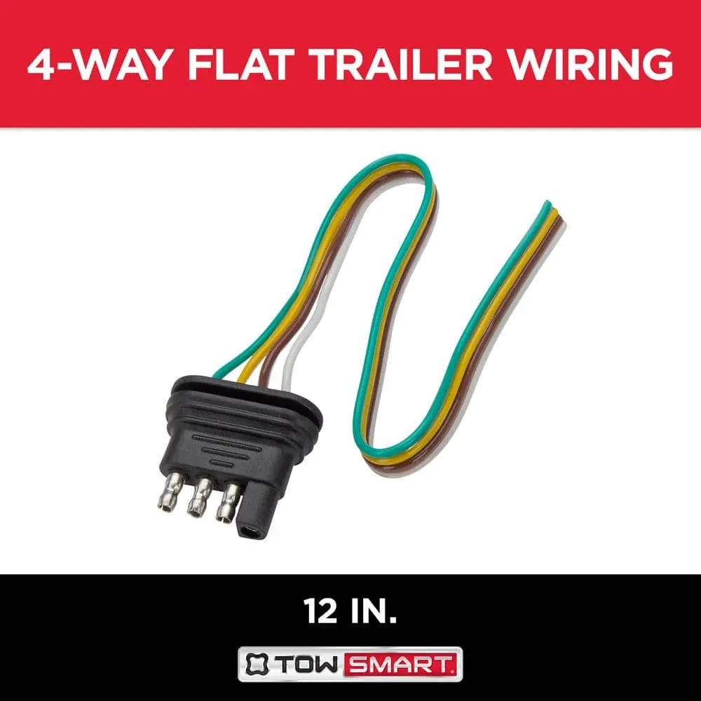 The TowSmart Electrical Connector offers a simple and efficient way to establish electrical connections between your vehicle and trailer while towing. Its one-piece design includes a 4-way flat connector (trailer end) and 12 inches of 18-gauge bonded wire for operating stop, turn, and tail lights. Made from durable, ergonomic plastic, it resists corrosion and stands up to harsh weather conditions. Ensure all functions are properly equipped for safe towing.