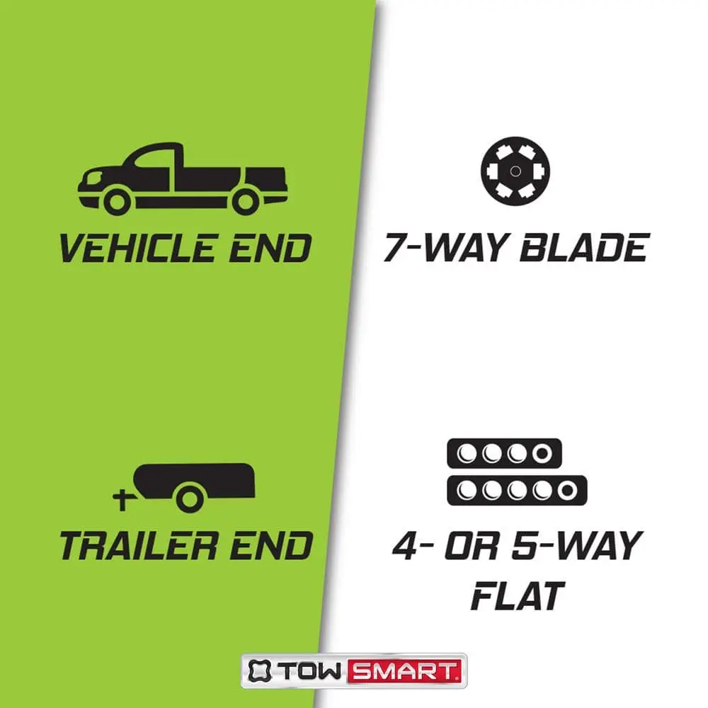 The TowSmart Electrical Adapter provides a simple and efficient solution for connecting your vehicle to a trailer with a different wiring configuration. With its single housing design, it easily plugs into your vehicle’s electrical socket without the need for additional wiring. This adapter is perfect for trailers that require a 4/5-way flat connection when your vehicle has a 7-way blade. It ensures connections for tail lights, brake lights, turn signals, and reverse lights. Built with durable, corrosion-resistant plastic, it withstands tough weather conditions for reliable performance.
