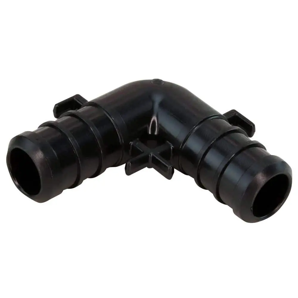 The ApolloPEX 1/2 in. Plastic PEX Barb 90-Degree Elbow (5-Pack) is easy to install and provides an efficient solution for water piping systems. Made from poly alloy, it serves as an excellent alternative to brass in areas where water quality may negatively affect brass fittings. ApolloPEX barb fittings are essential for creating economical potable water piping systems and can also be used in hydronic heating systems. These elbows can be secured with copper crimps, stainless steel pinch clamps, or crimp sleeves (sold separately). The ApolloPEX system offers a complete piping solution, including fittings, manifolds, valves, tools, and tubing.