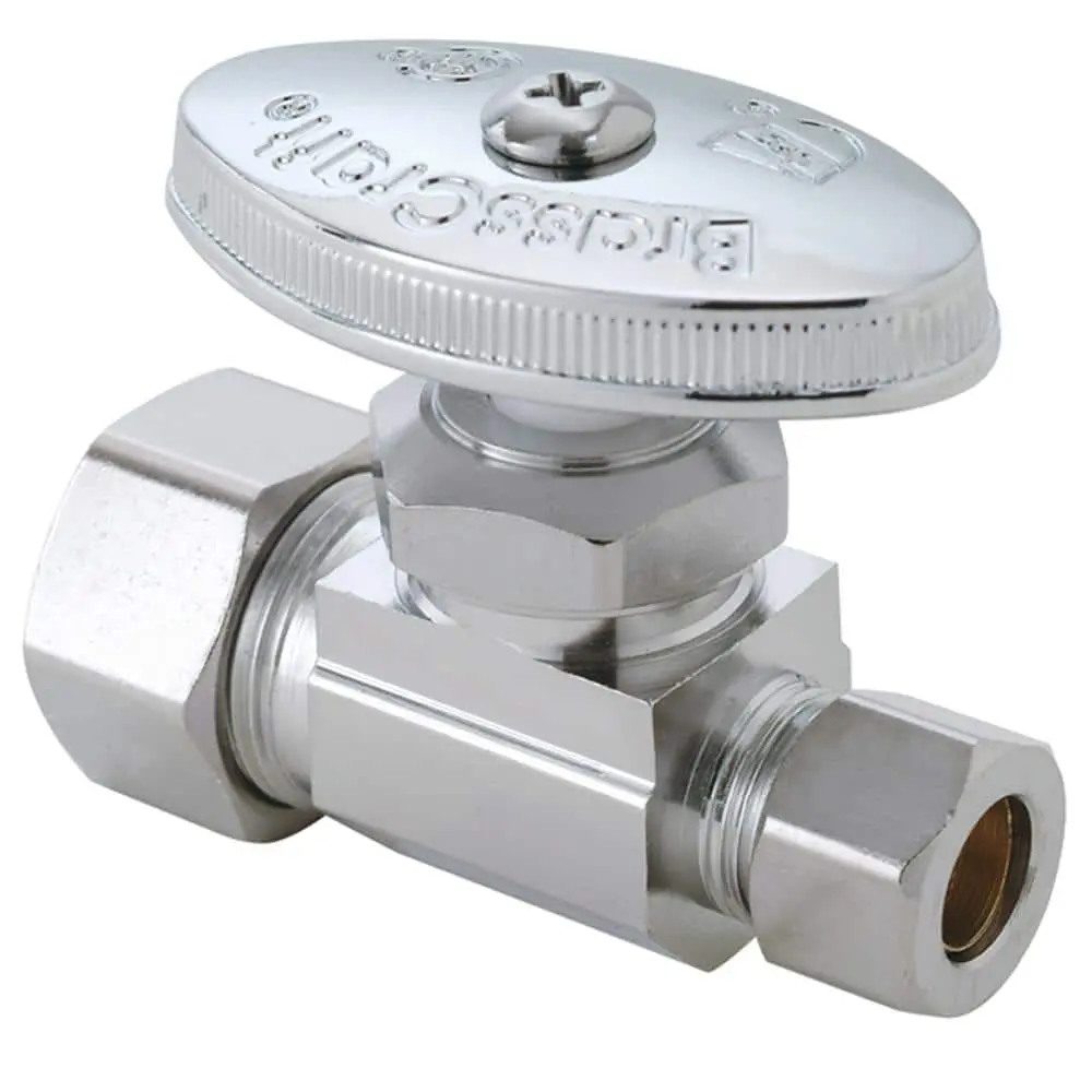 The BrassCraft 1/2 in. Nominal Compression Inlet x 3/8 in. O.D. Compression Outlet Multi-Turn Straight Valve is ideal for installations where the water pipe enters from the floor. Its multi-turn handle allows you to easily shut off water flow to a specific plumbing fixture for maintenance or repairs without disrupting water supply to the entire home. Designed for use with faucets, toilets, dishwashers, icemakers, washing machines, and more.