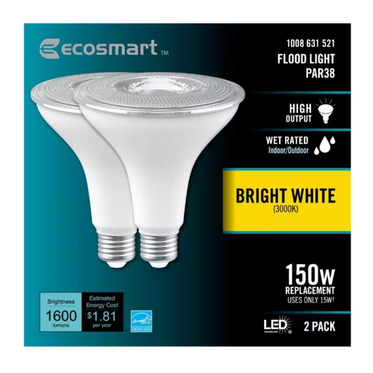The EcoSmart PAR38 medium base LED light bulb, equivalent to a 150-Watt incandescent bulb, offers a superior alternative with the advantages of LED technology. These bulbs are both dimmable and Energy Star certified, allowing you to reduce your monthly energy expenses.