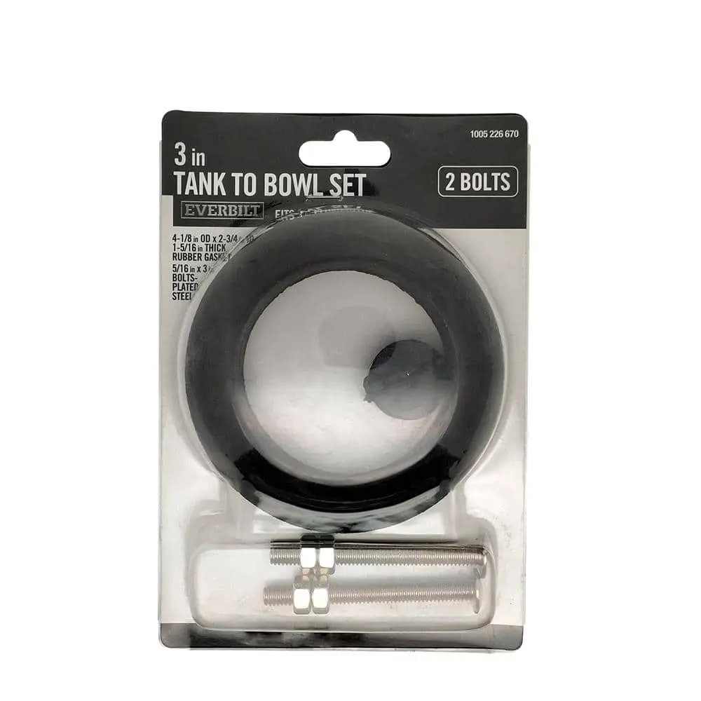This 3 in. Tank-to-Bowl Kit helps prevent leaks between your toilet tank and bowl. The 15-piece kit includes 2 zinc-plated galvanized steel bolts, a 3 in. rubber gasket, and washers. By stopping leaks, it helps save water, energy, and money.