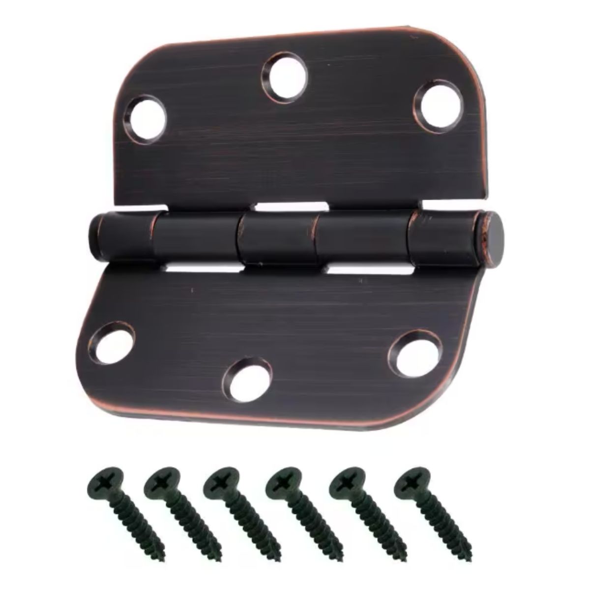Every Everbilt 3-inch by 5/8-inch radius door hinge is equipped with a removable pin, facilitating swift and effortless installation. Crafted from steel for enhanced durability, each hinge boasts a 5-knuckle full mortise design. The grease-packed construction ensures enduringly quiet operation, promoting a squeak-free experience. Additionally, the oil-rubbed bronze finish adds a touch of elegance to home decor.