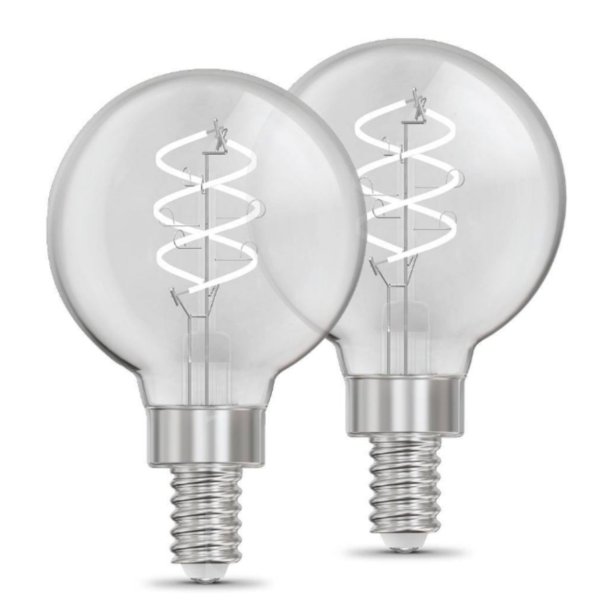 Enhance your lighting with Feit Electric's sophisticated Exposed White Filament LED Light Bulbs to give your space a new look with decorative bulbs. These unique white filament bulbs feature a classic globe shape design with exposed filaments enclosed in clear glass, along with double spiral white filaments for a more subtle appearance.