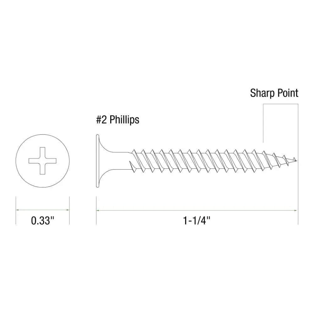 Grip-Rite 114DWS1 #6 x 1-1/4 in. #2 Phillips Bugle Head Fine Thread Drywall Screws are ideal for interior drywall installations. These hand-drive fasteners feature a black phosphate coating for enhanced corrosion resistance and improved mud adhesion, making them perfect for securing gypsum drywall to light gauge metal studs. A trusted choice in the construction industry, these screws are known for their reliable performance.