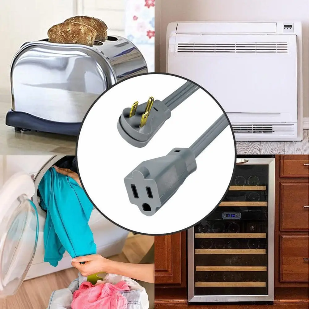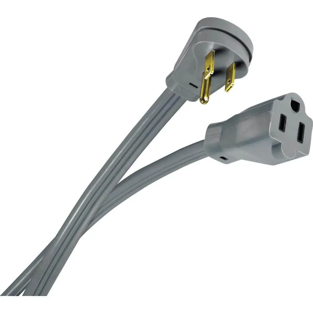 The HDX 6 ft. 15 Amp Air Conditioner/Appliance Extension Cord is designed for use with medium-duty appliances and is UL certified. It extends the power cord for use with air conditioners, refrigerators, and other appliances. The right-angle plug is molded onto the vinyl cord for added strength and helps save space in tight wall applications.