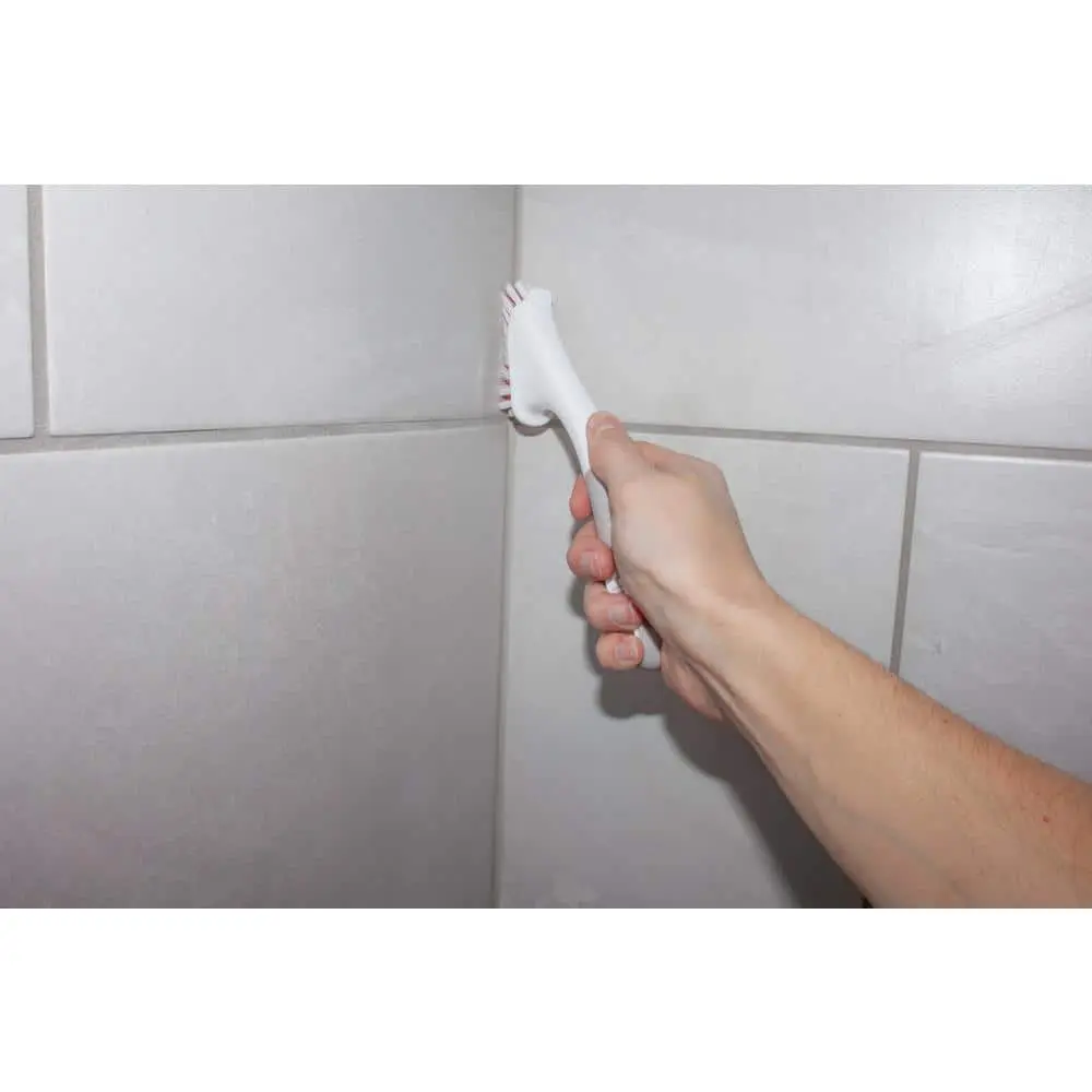 The HDX Tile and Grout Brush is designed for use on all tile and grout surfaces, including floors, bathrooms, countertops, and backsplashes. Its curved tip allows the brush to clean into corners and crevices without scratching, and it can also be used to scrape away tough messes. The extra-durable bristles are treated with an antimicrobial additive to help prevent the growth of odor-causing bacteria.