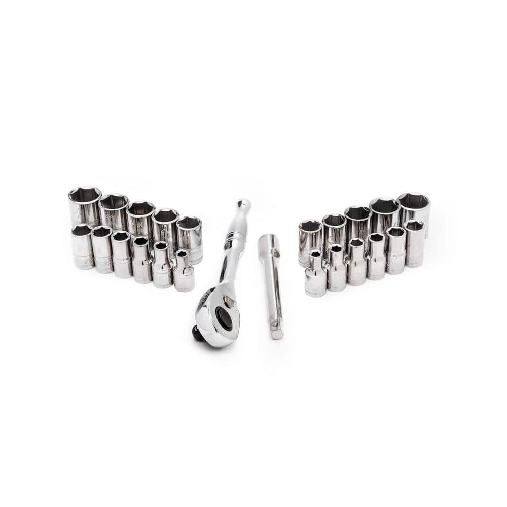 Introducing the Husky 24-piece 1/4-inch drive socket wrench set, crafted from chrome alloy steel for unbeatable durability and strength. Embracing 22 different sockets, this versatile set is tailored to handle a wide array of basic fastening and repair projects. Perfect for garages and home workshops, this set guarantees the reliability and performance needed for tackling various tasks with ease and confidence.