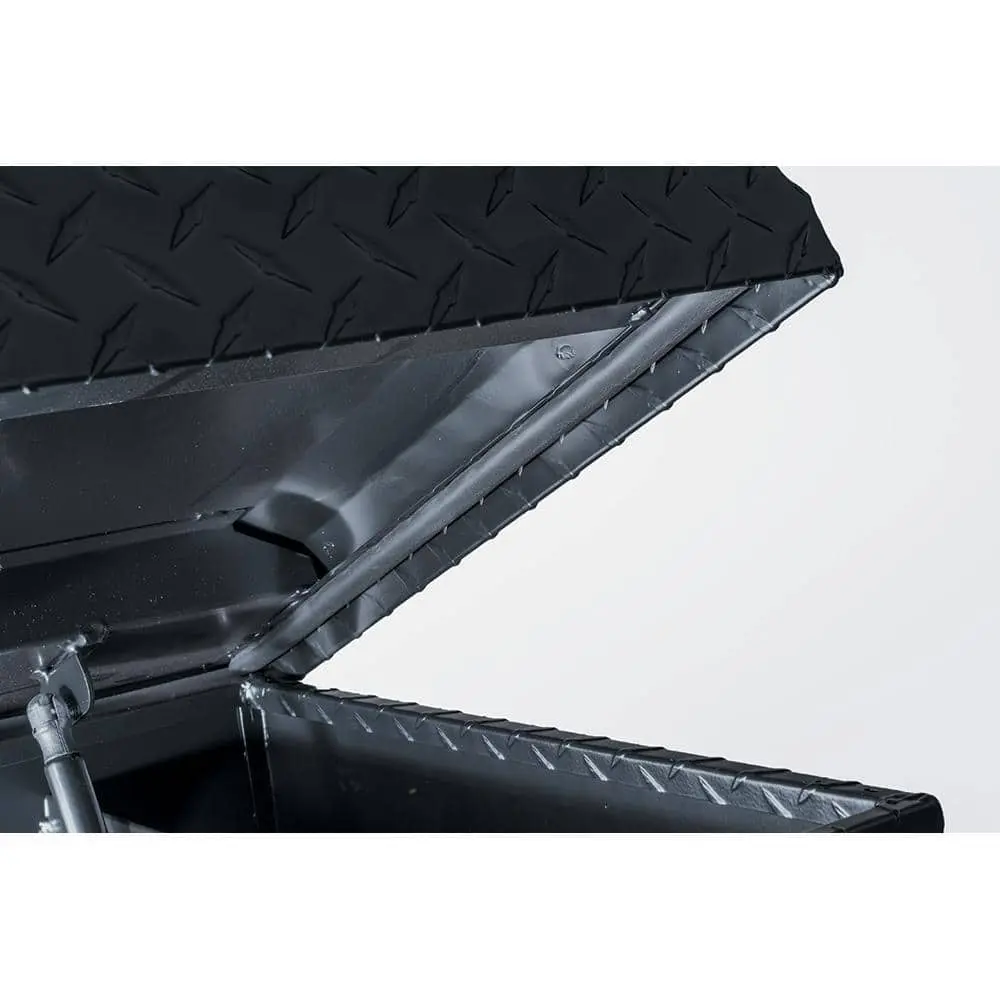The Husky Aluminum Low Profile Saddle Box for compact trucks offers reliable protection for your tools and equipment against weather and theft. Its fully welded aluminum construction, paired with a rubber weather seal, keeps contents safe from harsh elements. Lockable push buttons and welded loop strikers add an extra layer of security. The box includes a sliding plastic tray for organizing small tools and a no-drill mounting kit for quick and easy installation.