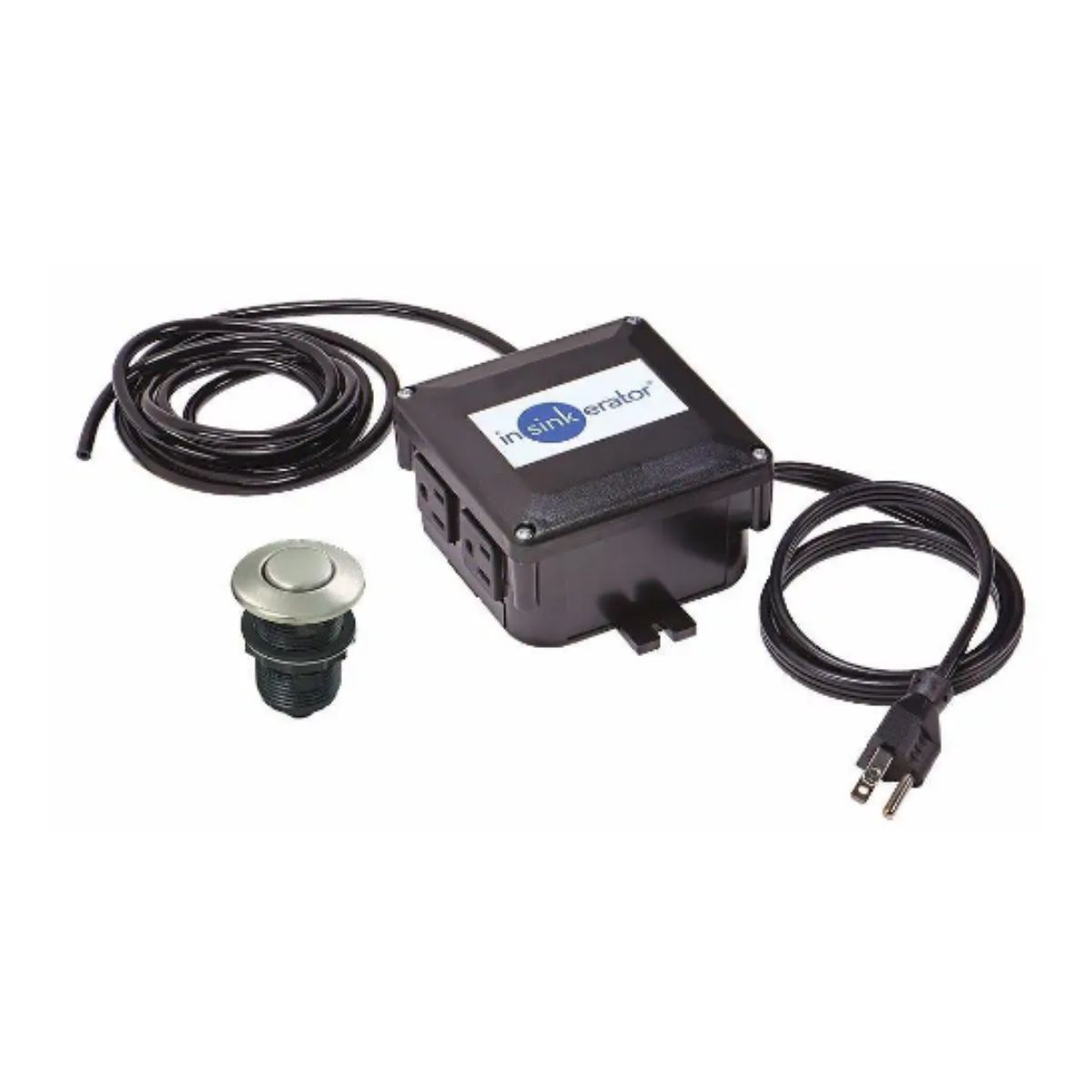 Enhance your kitchen sink with the INSINKERATOR Dual Outlet Garbage Disposal Air Switch Kit, adding elegance and convenience. This sink top on/off button offers a stylish alternative to a wall switch, ideal for kitchen islands with sink installations. Compatible with any INSINKERATOR disposer with below-sink AC power, this air-actuated switch mounts easily to the sink top or countertop, eliminating the need for a standard wall switch that may disrupt backsplash aesthetics. Additionally, this switch's practical design allows it to power other kitchen necessities and small appliances, like an instant hot water dispenser. The kit includes a decorative satin nickel-finish air switch push button, with optional special-order finishes available to match your style. INSINKERATOR has been perfecting kitchen solutions since 1938, ensuring products that are not only better for your family but also better for the environment.