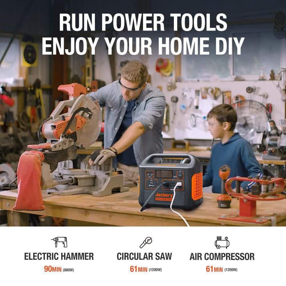 The Jackery Explorer 1500 delivers impressive power with its 1,800-W continuous output and 3,600-W peak capacity, complemented by a robust 1,534-Wh battery. This makes it ideal for powering high-demand tools and devices such as electric hammers, air compressors, circular saws, angle grinders, and electric wrenches. The innovative Solarpeak Technology, an advanced form of MPPT, enhances solar recharging efficiency by up to 30%, making the system smarter and more user-friendly. For quick recharging, the Explorer 1500 can be fully charged in just three hours using dual AC adapters (500-W total), or in six hours with a single adapter. It supports the simultaneous charging of up to seven devices, including TVs, drones, laptops, iPads, hairdryers, and cameras. Additionally, the power station includes an energy-saving feature that automatically shuts it off after 12 hours if the power draw falls below 25 watts, ensuring efficient energy management and prolonging battery life.