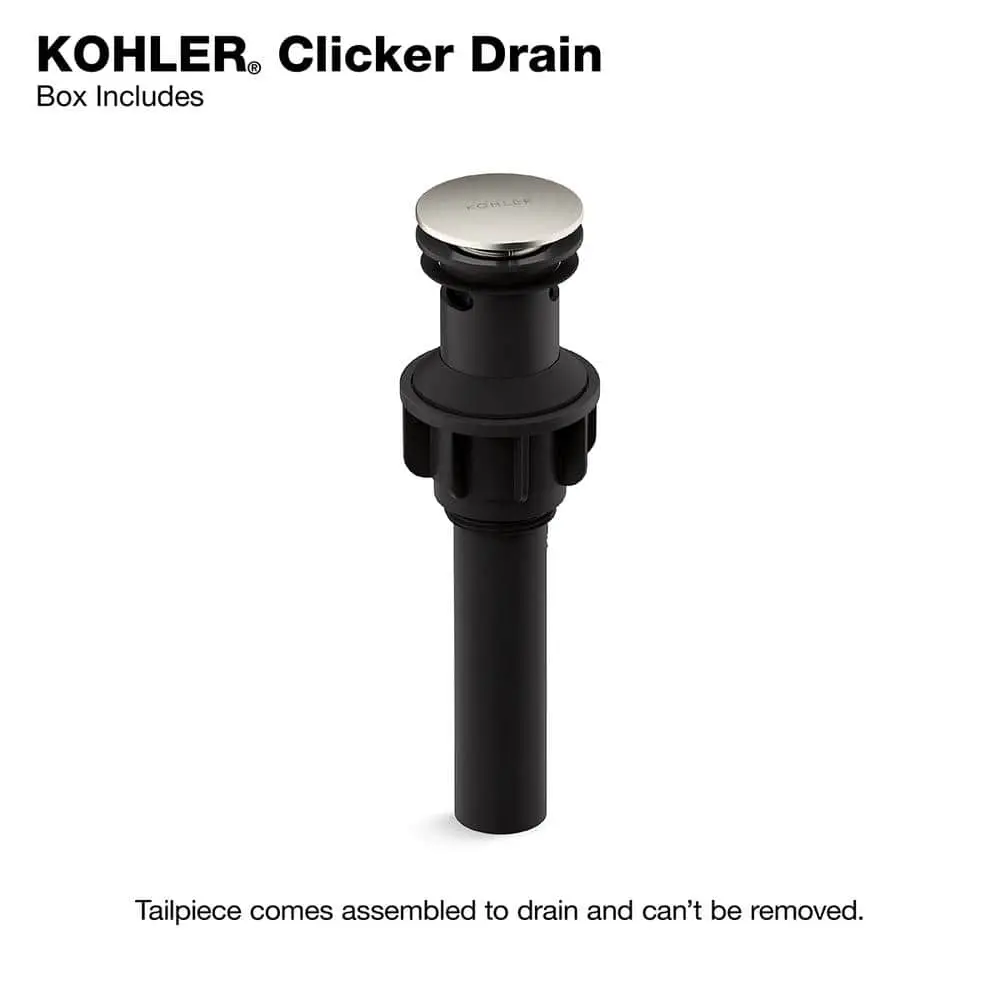 Finish your faucet installation with the Kohler clicker drain. This pop-up drain is designed to fit any sink, including Kohler and other brands, with a 1-1/4" connection, making it perfect for sinks with an overflow hole.