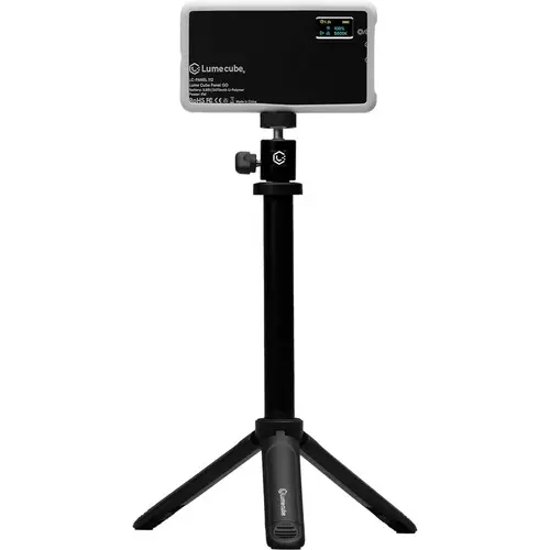 The Panel GO Bi-Color LED Light Panel Broadcast Lighting Kit from Lume Cube combines the compact Panel GO LED light with a desktop stand, a suction cup, and a 6' USB Type-C charging cable. Designed for video, photo, and webcam use, the Panel GO features a 3200 to 5600K adjustable color temperature, 112 bi-color LEDs, and 1 to 100% dimming in increments of 5%. The maximum brightness output is 1050 lux when measured at 1.8'. An intelligent LCD on the rear of the Panel GO displays the color temperature, brightness level, remaining runtime, and battery level. At 100% brightness, the light runs for approximately 1.3 hours, and at 50% for 2.3 hours. The Panel GO is charged via its USB Type-C port and can be used while charging. Design features include an aluminum build, a built-in diffusion panel, and side control buttons. The Broadcast Light Kit's included desktop stand telescopes from 6 to 30" and features a 360° rotating ball head for optimal positioning. The included suction cup can be used to mount the Panel GO on your desktop or laptop. Features Compact, slim LED for broadcast, webcam, or vlogging use LED panel with 112 bicolor LEDs Desktop stand extends from 6 to 30" 360° ball head for optimal positioning Desktop/laptop suction cup mount 3200 to 5600K adjustable color temperature CRI of 96+ for accurate color rendering 1 to 100% brightness 1050 lux brightness at 1.6' LCD panel displays color temperature, brightness level, remaining runtime, and battery level USB Type-C charging; can charge while in use Built-in diffusion panel