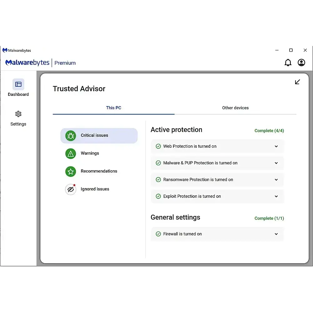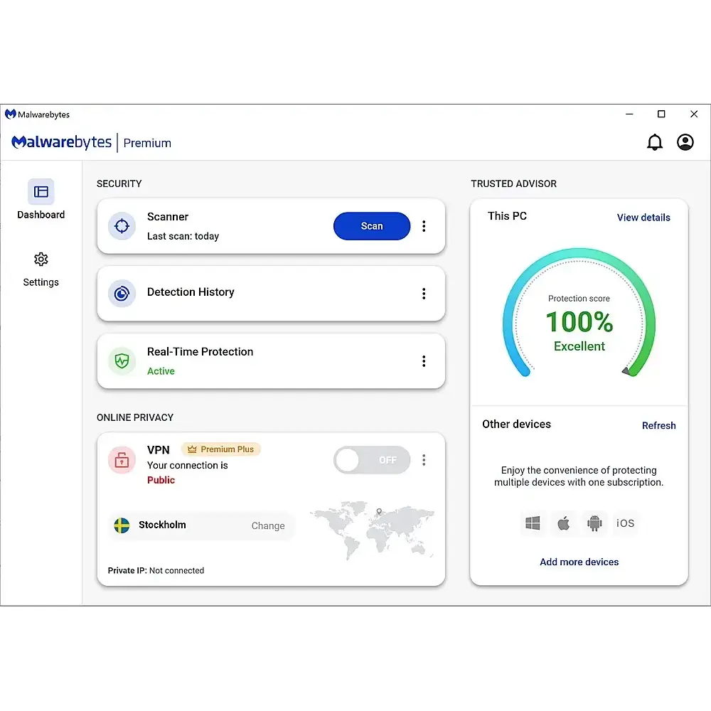 Malwarebytes Premium provides comprehensive protection against a wide range of threats, including viruses, ransomware, spyware, and more, all while ensuring your devices remain fast and responsive. It not only eliminates any existing infections but also offers proactive defense to prevent future threats. In addition to malware, it shields you from phishing scams, malicious or fraudulent websites, infected ads, credit card skimmers, and credential stealers. Malwarebytes Premium goes beyond just protecting your primary device—expand your security coverage to multiple devices, including computers, smartphones, and tablets, for complete protection across your digital life.