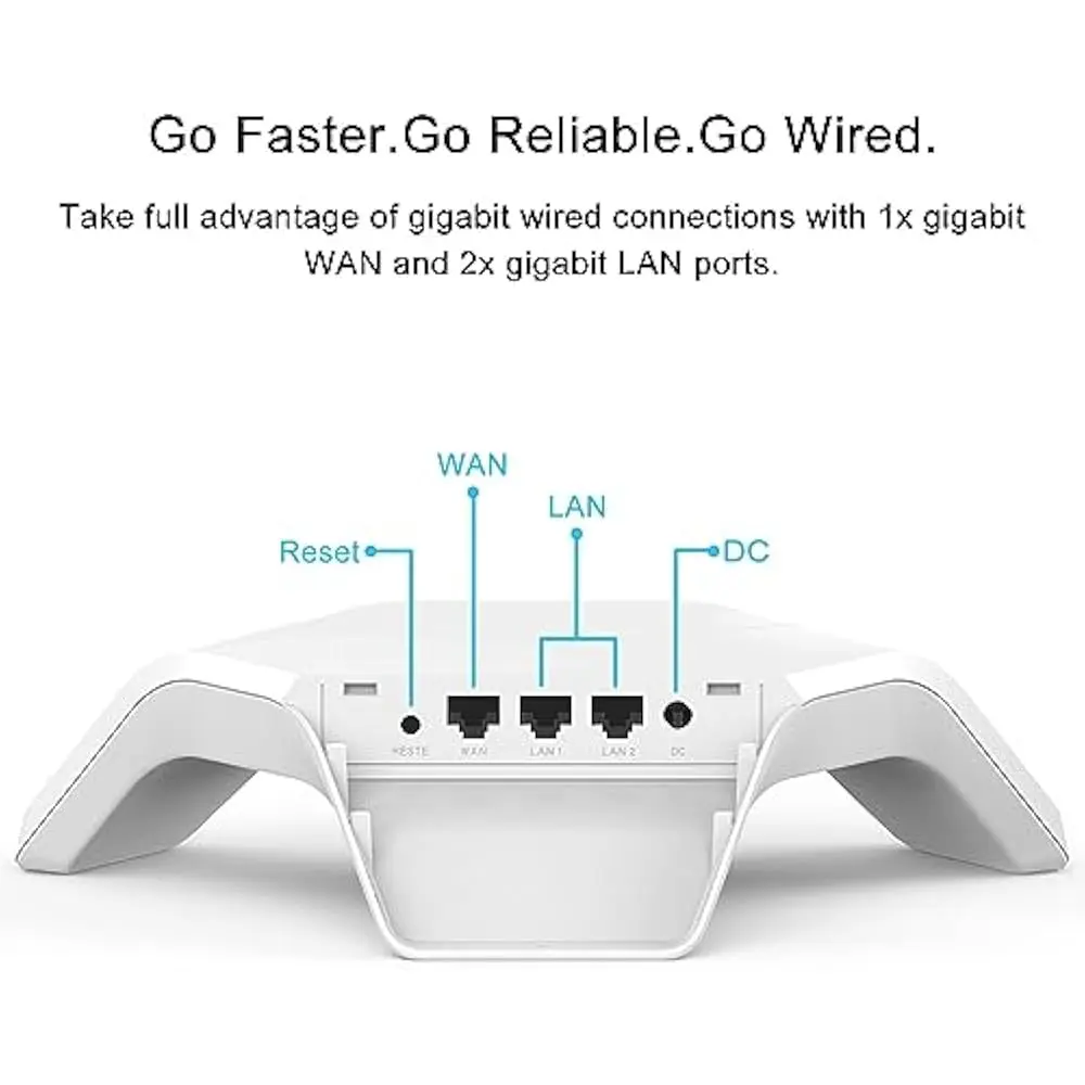 he Mesh WiFi 6 Router delivers AX1800 wireless speed (up to 1.8Gbps) for fast and reliable internet. With 3 Gigabit LAN ports, it offers stable wired connections for multiple devices. Designed to cover up to 3300 sq. ft, this router can support 120+ devices, making it perfect for large homes or offices. It utilizes the latest WiFi 6 technology, providing enhanced speed, capacity, and performance for seamless streaming, gaming, and browsing. Ideal for modern smart homes with high-speed internet needs.