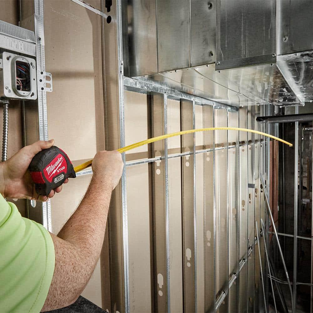 Introducing the Milwaukee 25 ft. STUD Magnetic Tape Measures the ultimate in durability and innovation. Featuring cutting-edge Plate Number 1 Blade Technology, these tape measures are designed to outlast and outperform the competition. With a remarkable 17 ft. reach, you can take on long measurements single-handedly and extend your reach on the jobsite. The magnetic hook effortlessly attaches to EMT and steel studs, providing unmatched convenience. Reinforced with impact-resistant materials, STUD Tape Measures are built to withstand the toughest job site conditions. Don't miss out on the double-sided printing for easy reading and the finger stop for precise blade retraction. Get your hands on the most durable retractable tape measure for all your jobsite needs the Milwaukee 25 ft. STUD Magnetic Tape Measures.
