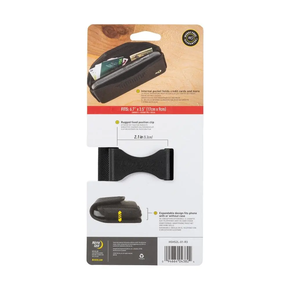 This rugged case ensures your phone stays accessible and protected from the elements. The Nite Ize Clip Case Hard-shell Holster is made from high-density EVA foam, offering protection against bumps and shocks, while the ballistic nylon adds extra durability. Available in vertical and horizontal models, it features elastic side panels that fit most phones, with or without a case. The holster has a strong hook-and-loop closure to shield your device from impacts and the elements, along with a fixed-position rugged clip that securely attaches to waistbands, belts, or backpack straps. An internal pocket stores your credit cards, ID, and cash, keeping valuables safe and easily accessible.