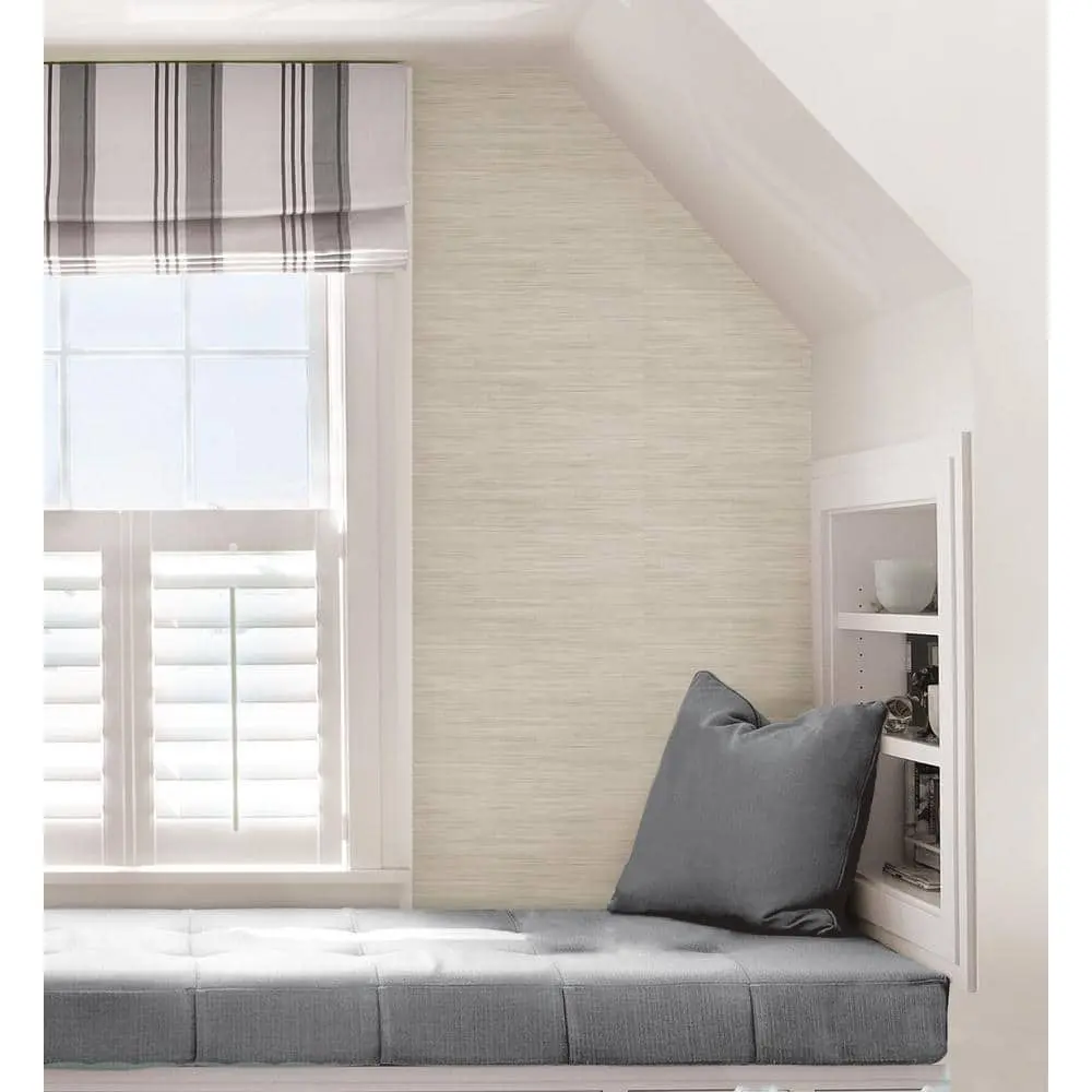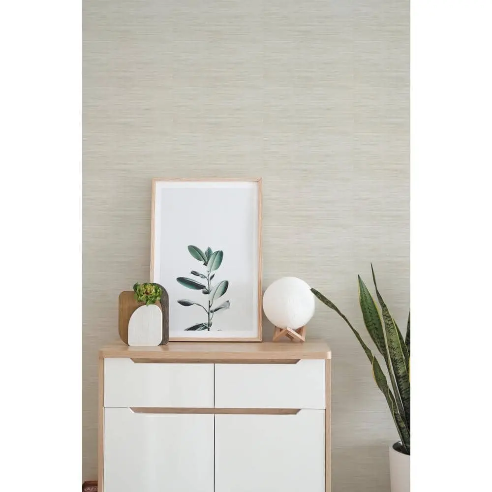 Transform your space into a chic, neutral haven with this faux grasscloth wallpaper. The peel-and-stick design showcases a blend of cream and off-white tones, offering the luxurious texture of premium grasscloth.