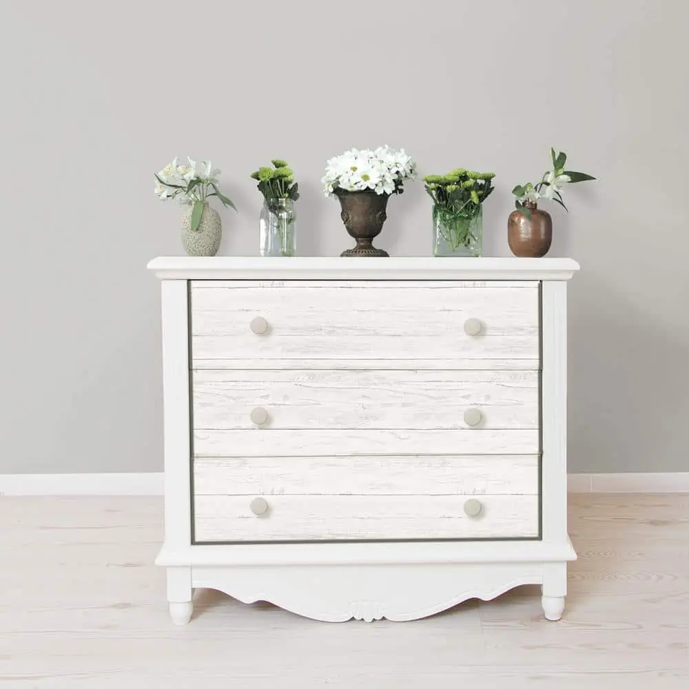 If you've always envisioned a white wood feature wall, this wallpaper is the ideal choice. The shiplap design features a charming aged look with subtle distressing, creating a chic reclaimed effect. This peel-and-stick wallpaper is gentle on your walls and comes in a 20.5 in. x 18 ft. roll.
