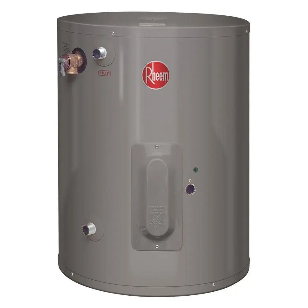 The Rheem Performance 20-Gallon Electric Point-of-Use Water Heater is designed for compact spaces, providing a reliable hot water source for a single application. It features a 2,000-watt heating element and a factory-installed temperature and pressure relief valve. This unit operates on a 120-volt electrical connection and can be wall-mounted for space efficiency.
