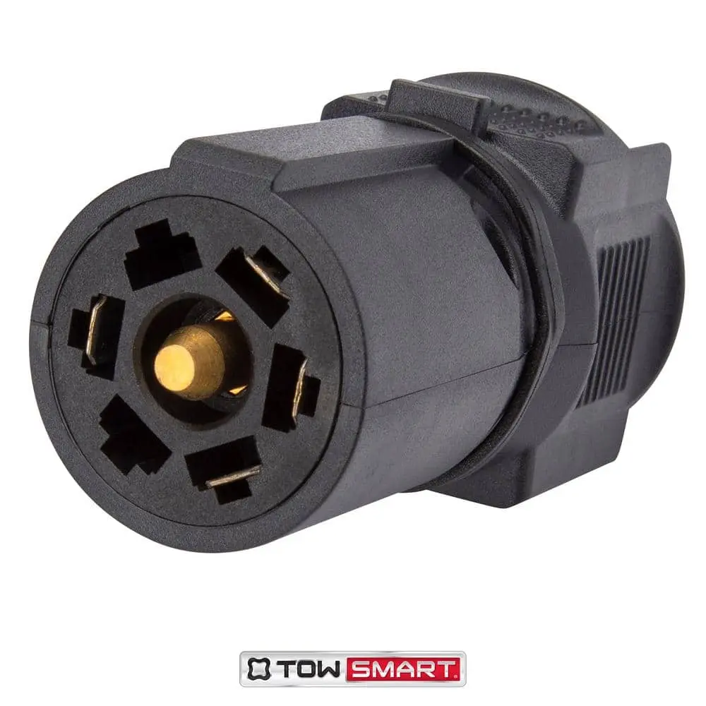 The TowSmart Electrical Adapter provides a simple and efficient solution for connecting your vehicle to a trailer with a different wiring configuration. With its single housing design, it easily plugs into your vehicle’s electrical socket without the need for additional wiring. This adapter is perfect for trailers that require a 4/5-way flat connection when your vehicle has a 7-way blade. It ensures connections for tail lights, brake lights, turn signals, and reverse lights. Built with durable, corrosion-resistant plastic, it withstands tough weather conditions for reliable performance.