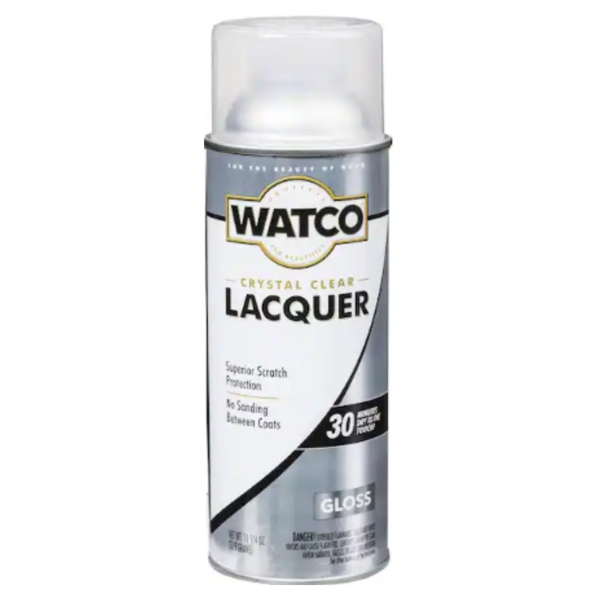 Watco 11.25 oz. Clear Gloss Lacquer Wood Finish Spray offers a robust solution for interior wood surfaces, delivering a durable, high-gloss finish that enhances and protects. It effectively fills wood pores, eliminating the need for additional fillers, and provides a crystal-clear protective coat. Ideal for furniture, doors, cabinets, and paneling, this spray covers up to 40 sq. ft. with a recommended minimum of 3 coats for optimal results. Its aerosol application ensures easy and even coverage, drying to touch in just 30 minutes and allowing recoating after 2 hours when the previous coat is clear and hard. Cleanup is straightforward using lacquer thinner. Not suitable for flooring, this product includes a PaintCare fee in select states for environmentally responsible disposal.