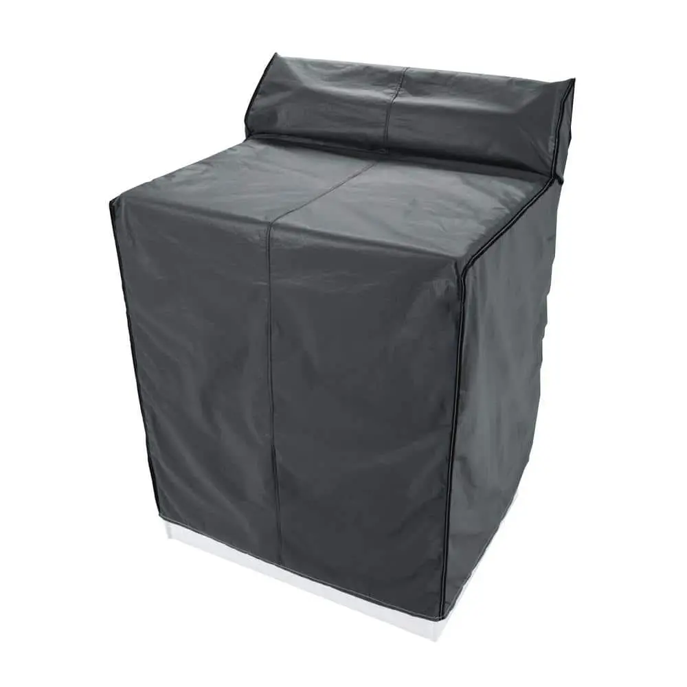 Keep your washer and dryer protected with this tailored cover, designed to fit most top-load units. It shields your appliances from various laundry room conditions, preventing chips and scratches. The cover is dust, mildew, and water-resistant, ensuring long-lasting protection. It features ties at the bottom to keep it securely in place. Ideal for seasonal storage, the cover is easy to clean with a damp cloth. Dimensions are approximately 30" wide x 23" deep x 36" high, with a 6" back ledge.
