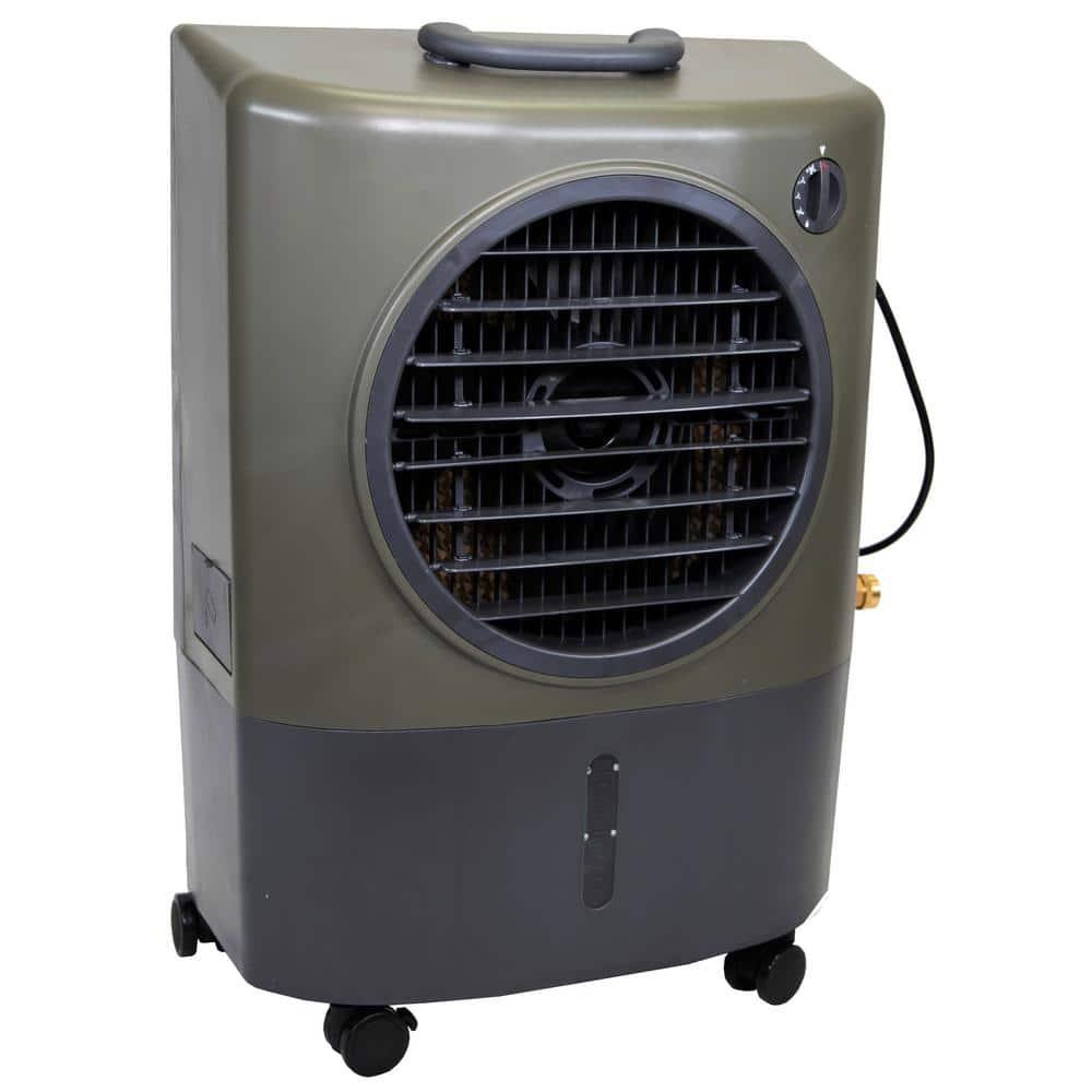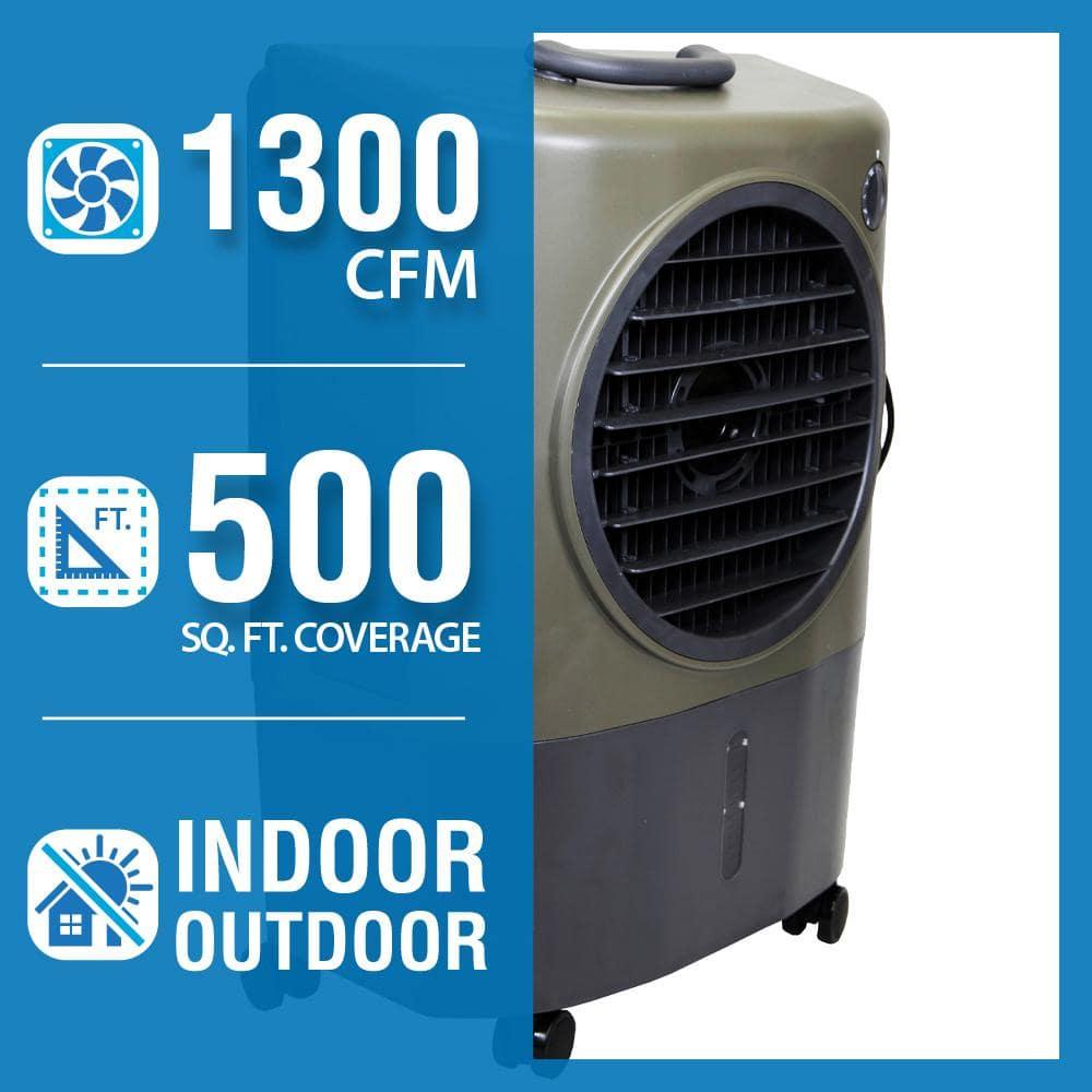The Hessaire 1,300 CFM Evaporative Cooler is compact yet outperforms larger models. Its high efficiency is due to expanded air-intake areas and high-density XeL50 media, which offers 80% more evaporation surface than standard media for enhanced cooling. The patented axial prop delivers cool air more efficiently and farther. Made from durable yet lightweight ABS resin, this model includes a handle for easy portability and comes with a 1-year warranty.