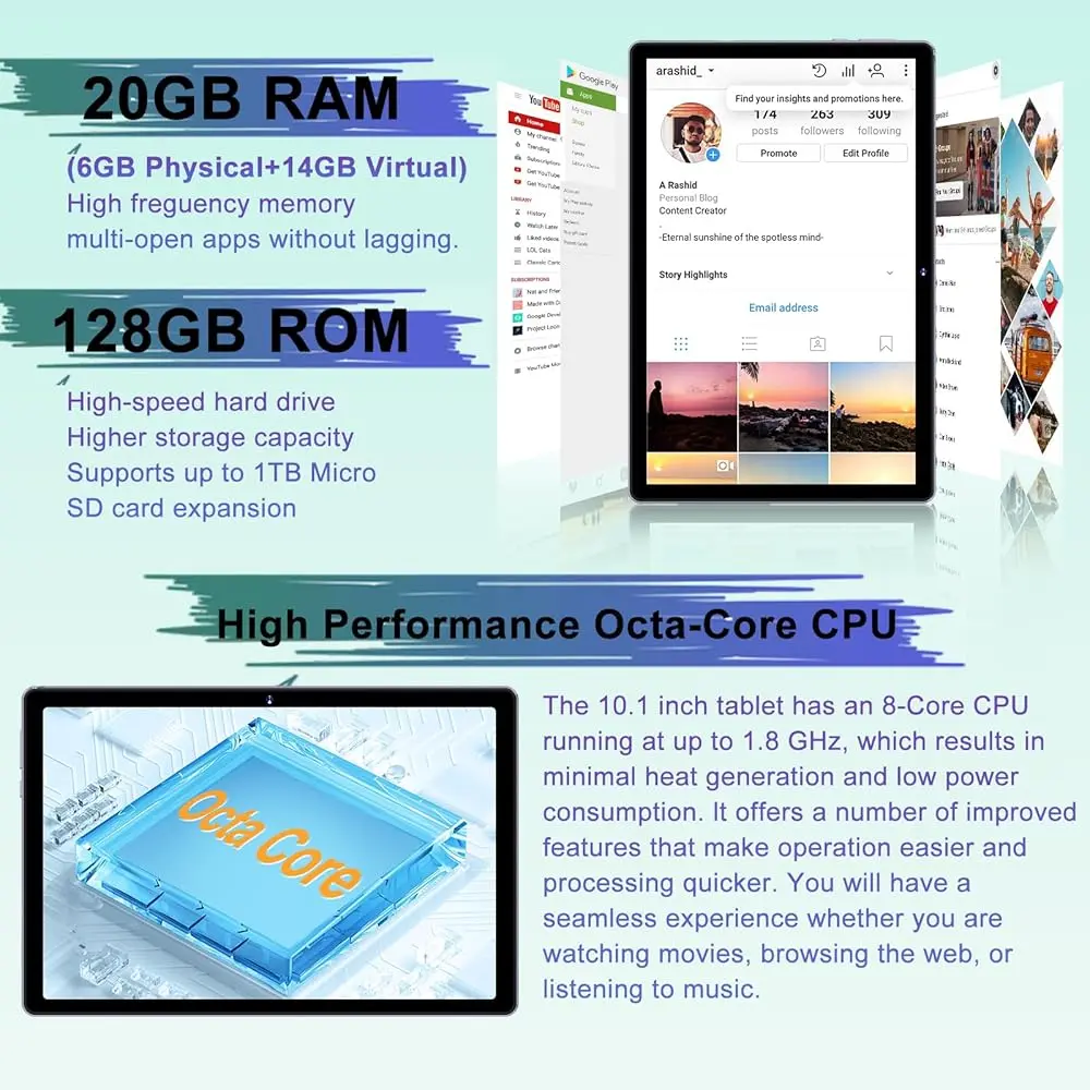 • 20GB RAM + 128GB Storage: Features 20GB of RAM (6GB physical + 14GB virtual) and 128GB of ROM, expandable up to 1TB via TF card. Fast file downloads and ample storage space for apps, photos, and more.