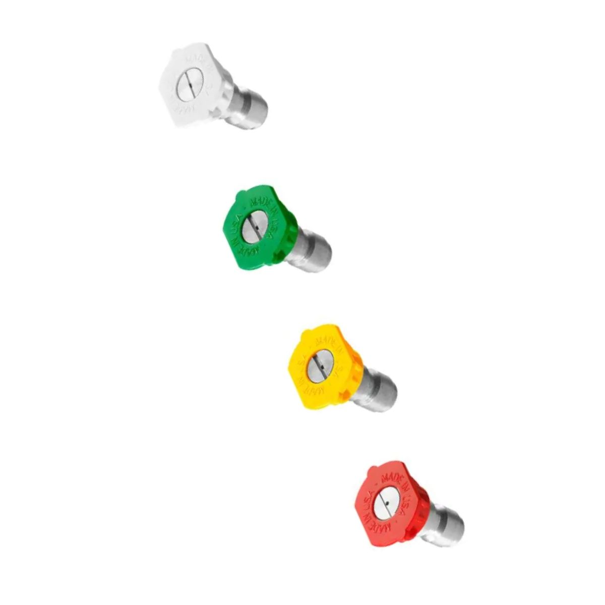 The 4-piece Nozzle set by Power Care is ideal for any homeowner with a variety of surfaces to clean. The Nozzle Kit is designed to work with any Pressure Washer up to 3300 PSI, and includes 0, 15, 25, and 40 nozzles. Each nozzle is Quick-Connect capable, making attaching and removing a snap.