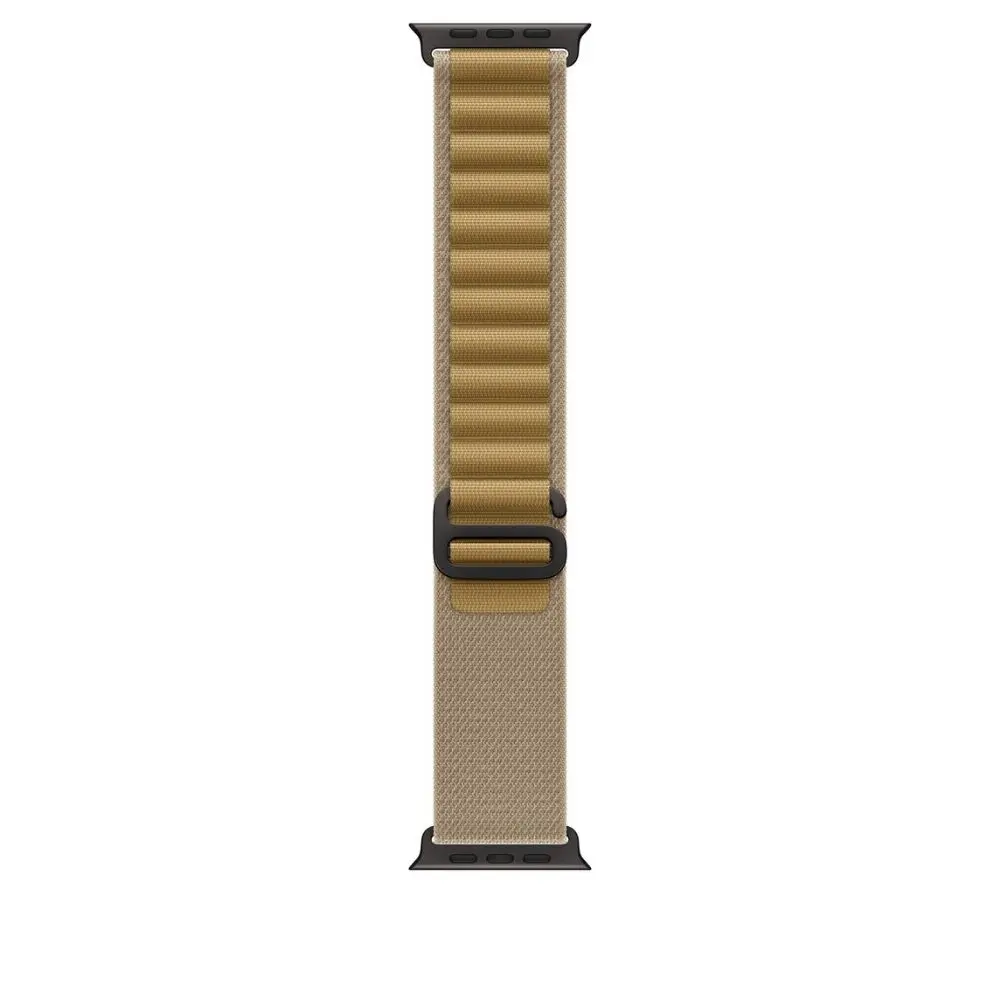 Premium alpine loop design for durability and comfort. Small size ensures a snug and secure fit. Black titanium finish for a sleek, stylish look. Tough, woven fabric with a soft, comfortable feel. Adjustable design for a customizable fit. Compatible with all 49mm Apple Watch models. Secure, easy-to-use clasp for quick attachment and removal.