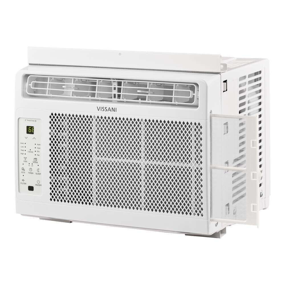 The Vissani 5,000 BTU window air conditioner boasts a stylish and modern design, making it a great addition to any home. It fits windows up to 36 inches wide and is ideal for cooling small rooms up to 150 sq. ft. The unit offers customizable cooling with 7 temperature settings, 2 fan speeds, and 2 cooling modes. It comes with an installation kit and instructions for straightforward setup, and features a washable, reusable filter. Enjoy efficient air circulation and cooling with the added assurance of a 1-year limited warranty.