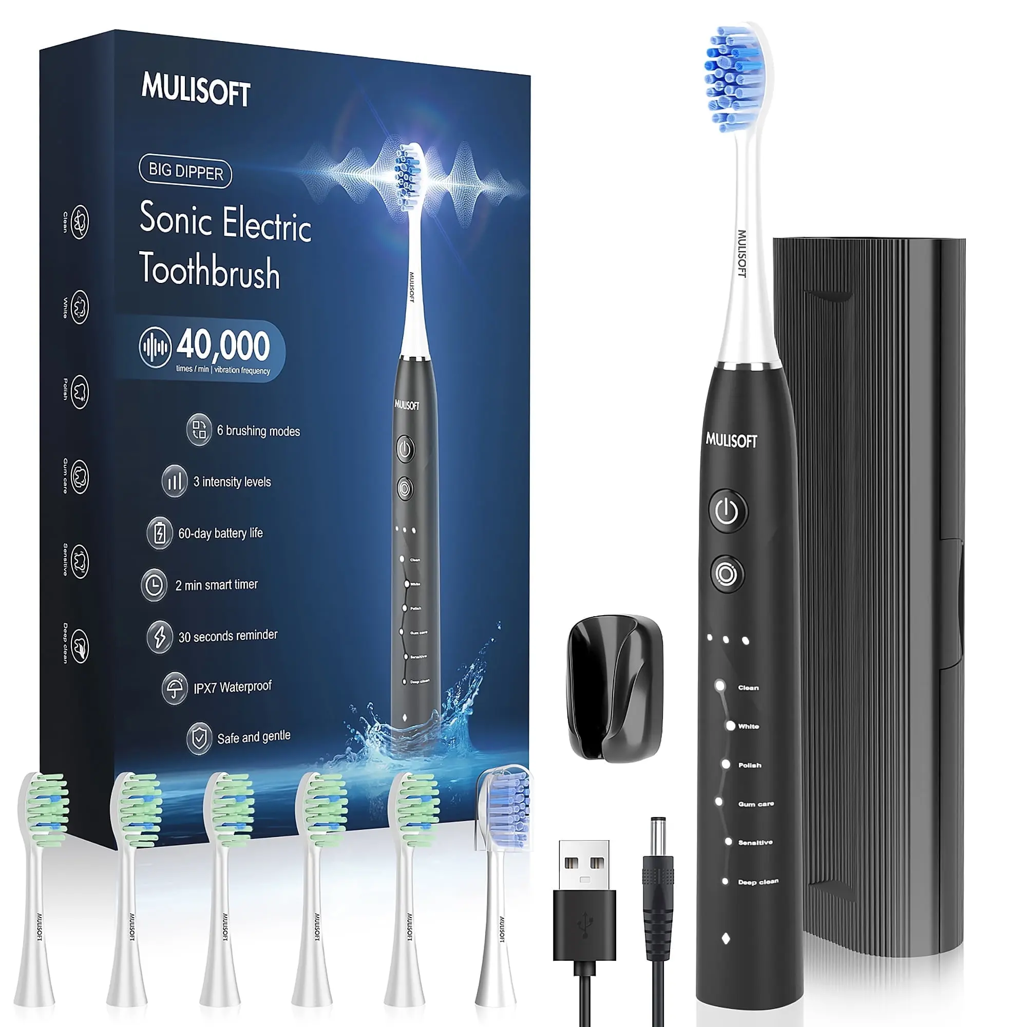 6 Modes for All Oral Care Needs: The 7MAGIC electric toothbrush for adults features modes for cleaning, whitening, sensitivity, gum care, and massage to cater to all your oral health requirements.