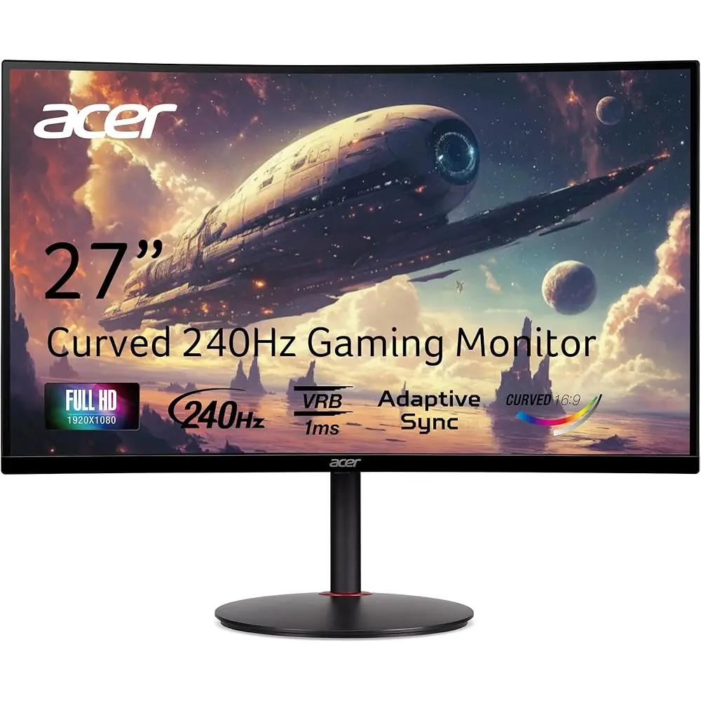 Introducing the Acer Nitro XV270 27" Curved Gaming Monitor, designed to elevate your gaming experience. With a 1500R curve and Full HD (1920 x 1080) resolution, it delivers vibrant, sharp visuals with a broader view, perfect for high-definition entertainment and immersive gaming. The zero-frame design maximizes screen space, ensuring an edge-to-edge display.