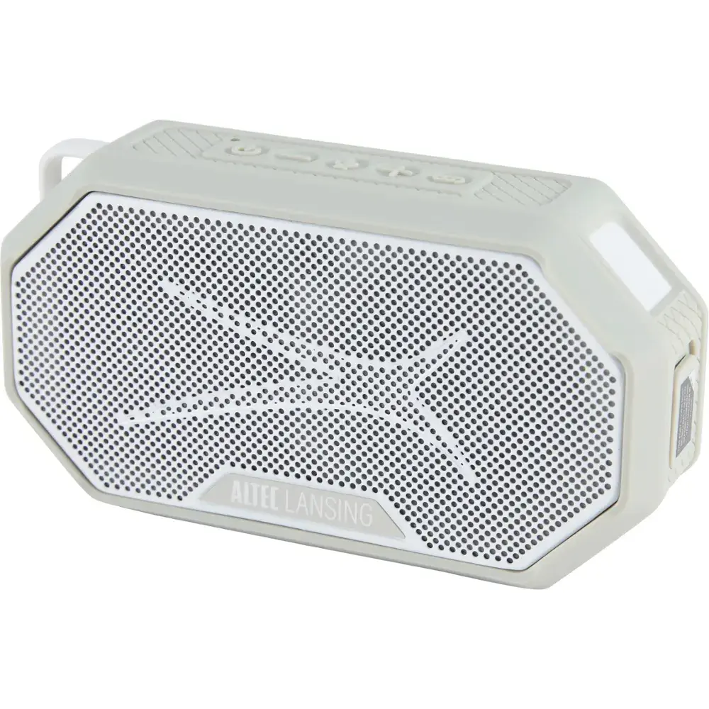 The Altec Lansing Bluetooth HydraMini 2.0 EverythingProof Portable Speaker is built for durability with its EverythingProof design, ensuring reliable performance in all weather conditions. Enjoy seamless music streaming through Bluetooth connectivity, while the compact and portable design makes it easy to take on the go. Despite its small size, it delivers powerful sound for an impressive listening experience. The modern gray and white finish adds a sleek touch, complementing any environment