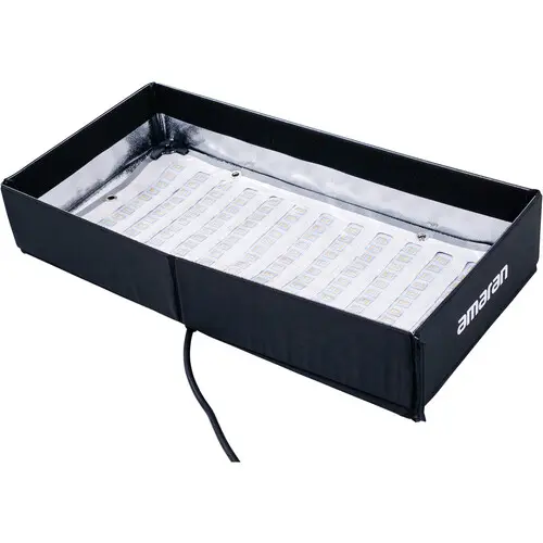 The F21x Bi-Color LED Flexible Mat from amaran is powerful, versatile, and flexible bi-color LED mat that measures 2x1'. It offers outstanding light output and color rendering suitable for a variety of users, from filmmakers to videographers, content creators, and still photographers. Providing 100W of power, this ultralight fixture's high-output bi-color chipset can be tuned from 2500K to 7500K, and features nine customizable lighting FX. It has stellar CRI and TLCI scores of 95+ and 98+, and stepless dimming from 0 to 100%. An included folding X-frame stretches the mat to a rigid panel that can be attached directly to a C-stand grip head using the straight Baby Pin adapter, or onto any standard light stand with the included right angle Baby Pin and tilting stand mount. The included foldable softbox has two strengths of diffusion, and a fabric grid that uses using an integrated hook-and-loop fabric to instantly turn this flexible mat into an ultrathin soft light that will add beautifully controlled soft light to a scene.