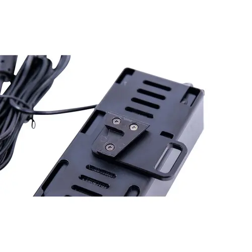 The control box is a multi-voltage AC power supply that also features a V-Mount battery plate for use with compatible 14.4V, 26V, or 28.8V batteries. Full output can be achieved when using the AC power supply, using batteries allows the F21x to be used at either half-power or full-power, depending on battery strength.