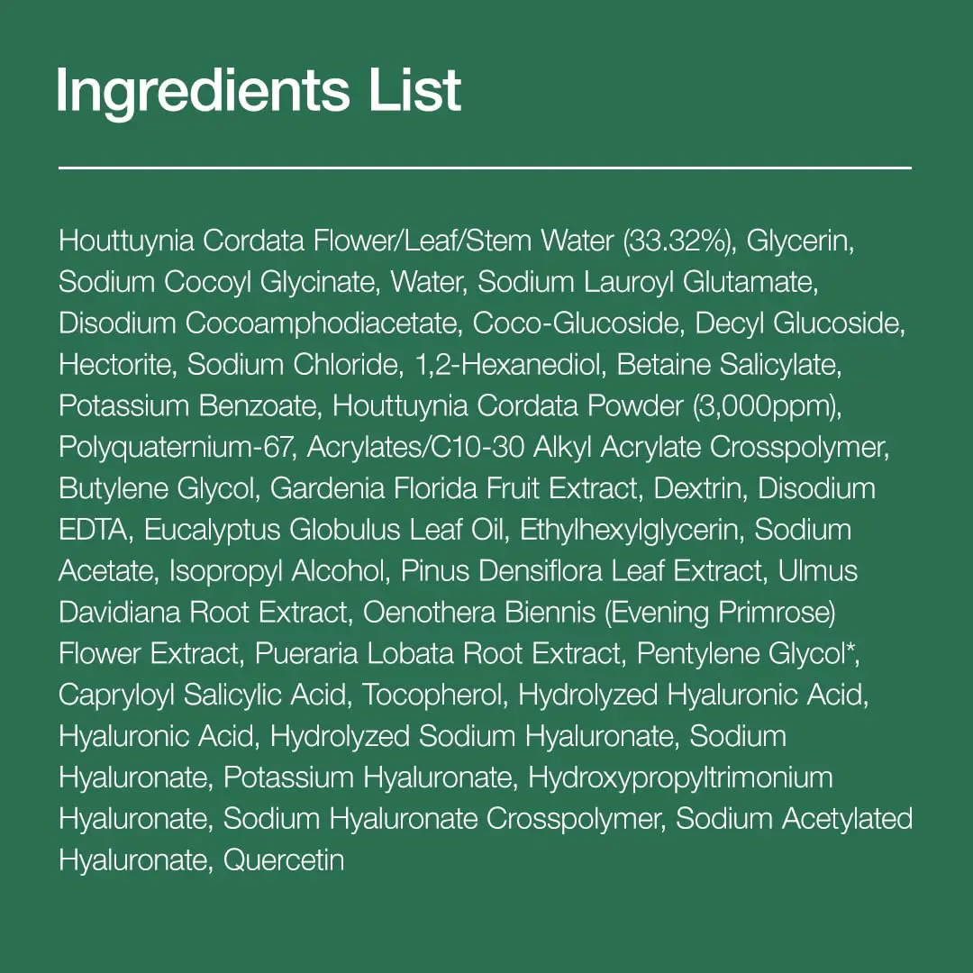 Deep Pore Cleansing for All Skin Types: Light foam with Heartleaf Extract, gentle enough for all skin types, ideal for oily and combination skin.Gentle Exfoliation: Contains 3,000ppm Heartleaf powder to clear pores, exfoliate dead skin, and remove impurities.Soothes & Calms Skin: Quercetinol from Heartleaf helps reduce inflammation, calming skin after cleansing.0.5% BHA: Exfoliates dead skin and controls sebum production; a gentler alternative to physical scrubs for smoother, more radiant skin.Refreshing & Hydrating Finish: Infused with triple Hyaluronic Acid, leaves skin feeling refreshed and hydrated.