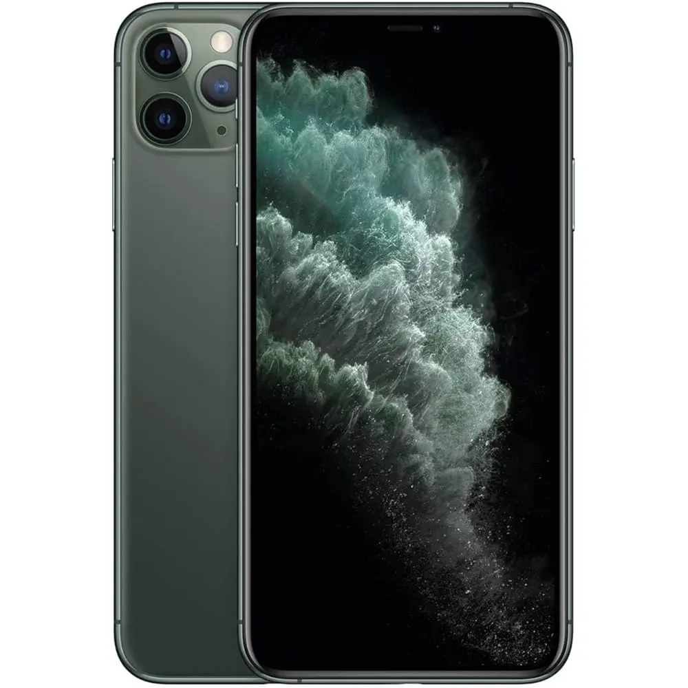 The Apple iPhone 11 Pro Max, 64GB, Midnight Green - Unlocked (Renewed) features a 6.5-inch Super Retina XDR display, A13 Bionic chip, and a triple-camera system with 12MP Ultra-Wide, Wide, and Telephoto lenses for professional-quality photos and 4K video. It includes Night Mode for low-light shots, Face ID for secure access, and all-day battery life. With 64GB of storage, this unlocked, Renewed iPhone offers top performance and flexibility. Water and dust resistant, it's tested and restored to like-new condition for great value.
