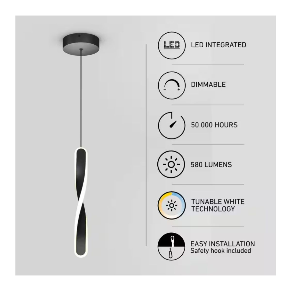 The Finley 1 suspended luminaire enhances contemporary home decor with its sleek and futuristic design. Its practical format makes it ideal for kitchens, while its variable intensity provides beautiful accent lighting throughout the day. Equipped with energy-efficient LED technology, it adds a unique touch of splendor to your space when installed above kitchen islands or counters.
