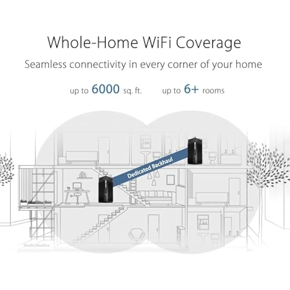 - Extended Coverage: Thanks to ASUS RangeBoost Plus, the system extends WiFi signal range by up to 38%, covering up to 6,000 square feet of your home, ensuring a stable connection in every corner.