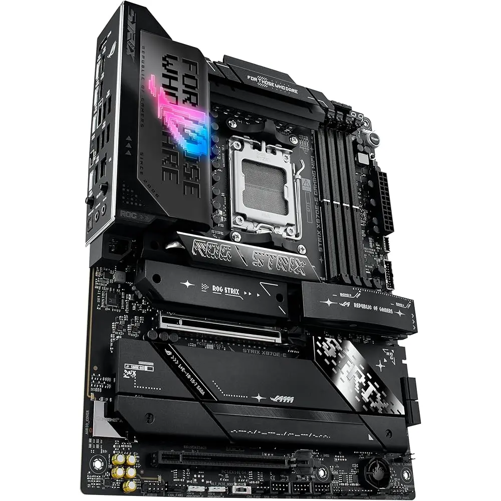 The ASUS ROG Strix X870E-E Gaming WiFi is a cutting-edge motherboard designed to unleash the full potential of AMD Ryzen 7000 Series processors. With its advanced features and innovative design, it's the perfect foundation for your high-performance gaming rig.